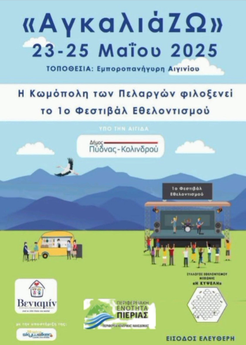 Από τις 23 έως τις 25 Μαΐου 2025, η Πλατεία Εμποροπανήγυρης Αιγινίου γεμίζει χρώμα, φωνές, μουσική και – πάνω απ’ όλα – προσφορά. Το 1ο Φεστιβάλ Εθελοντισμού “ΑγκαλιάΖΩ” έρχεται να αναδείξει τη δύναμη της συλλογικότητας και της ανθρώπινης σύνδεσης.
