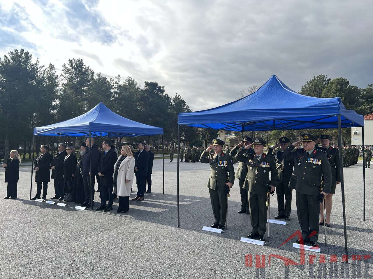 Στην τελετή παρέστησαν οι βουλευτές Πιερίας Φώντας Μπαραλιάκος, Άννα Μάνη-Παπαδημητρίου και Σπύρος Κουλκουδίνας. Το «παρών» έδωσαν επίσης η Αντιπεριφερειάρχης Πιερίας, ο Δήμαρχος Δίου-Ολύμπου, καθώς και εκπρόσωποι του Δήμου Κατερίνης και παραγωγικών φορέων. Η παρουσία των αρχών επιβεβαίωσε την άριστη συνεργασία του Στρατού με την τοπική κοινωνία.