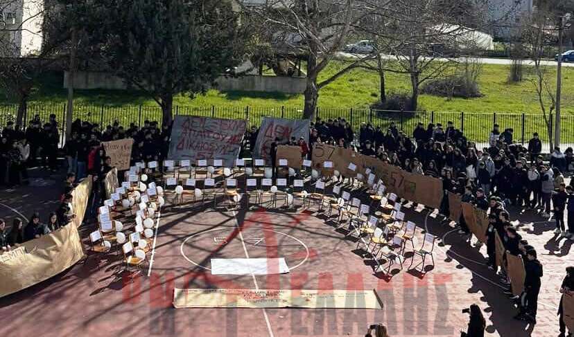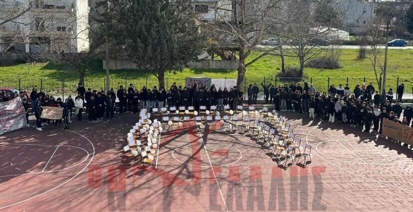 Με μια συμβολική και ιδιαίτερα φορτισμένη πρωτοβουλία, η μαθητική κοινότητα του 3ου ΓΕΛ και του 3ου Γυμνασίου Κατερίνης τίμησε τη μνήμη των θυμάτων της σιδηροδρομικής τραγωδίας των Τεμπών. Μαθητές και εκπαιδευτικοί ενώθηκαν σε μια κοινή δράση ενάντια στη λήθη.