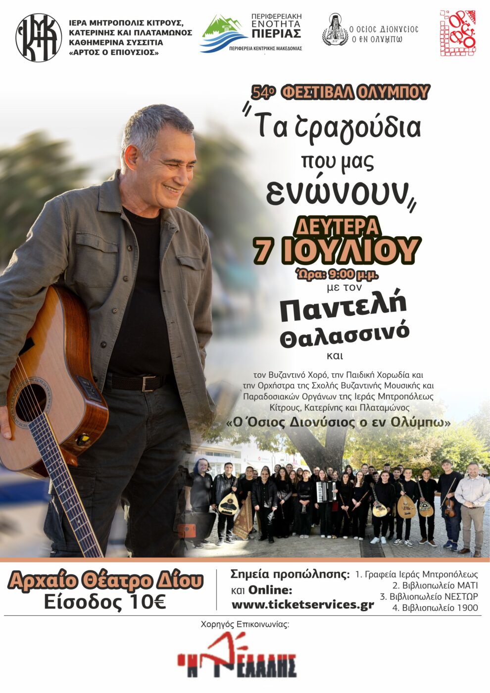 54ο ΦΕΣΤΙΒΑΛ ΟΛΥΜΠΟΥ: “Τα τραγούδια που μας ενώνουν” – Δευτέρα 07/07 με τον Παντελή Θαλασσινό