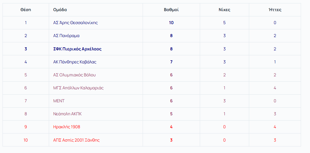 ΣΦΚ Πιερικός Αρχέλαος (Παπαδόπουλος): Ζαμάνη 2, Κιολέογλου Ν. 11 (2), Χούλη 19 (1), Λάππα 2, Σωπιάδου 6 (1), Τελίδου 22 (1), Κιολέογλου Π. 11 (3), Καρανικόλα, Ράπτη, Μαυρίδου, Παπαδοπούλου 2, Αμανατίδου 2.