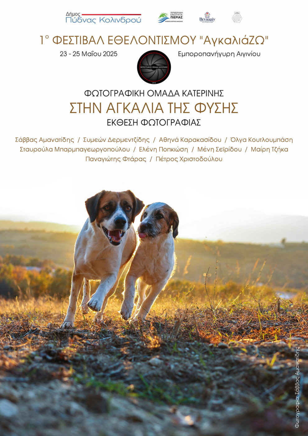 Η Φωτογραφική ομάδα Κατερίνης με χαρά συμμετέχει στο 1ο Φεστιβάλ Εθελοντισμού “ΑγκαλιάΖΩ”, που διοργανώνει ο Δήμος Πύδνας Κολινδρού σε συνεργασία με τον ΕΘΕΛΟΝΤΙΚΟ ΣΥΛΛΟΓΟ ΜΕΘΩΝΗΣ «Η ΚΥΨΕΛΗ», τον ΣΥΛΛΟΓΟ ΠΡΟΣΤΑΣΙΑΣ ΠΑΙΔΙΩΝ ΒΕΝΙΑΜΙΝ και την υποστήριξη της “Skywalker” και το οποίο θα πραγματοποιηθεί, από τις 23 ως τις 25 Μαΐου 2025 στο Αιγίνιο Πιερίας.