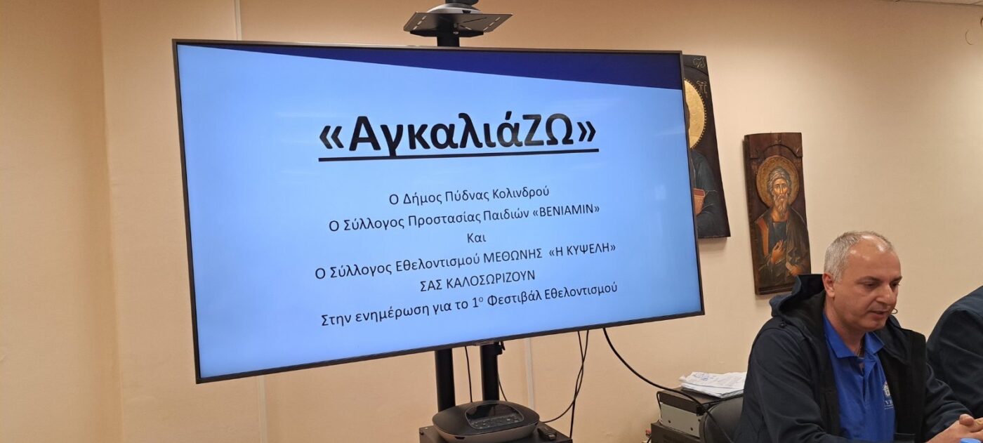 Με μεγάλη επιτυχία πραγματοποιήθηκε χθες στο Δημαρχείο Πύδνας Κολινδρού η παρουσίαση του 1ου Φεστιβάλ Εθελοντισμού του Δήμου. Η εκδήλωση συγκέντρωσε εκπροσώπους όλων των συλλόγων της βόρειας Πιερίας, επιβεβαιώνοντας το έντονο ενδιαφέρον και την κινητοποίηση της τοπικής κοινωνίας για την προώθηση του εθελοντισμού.