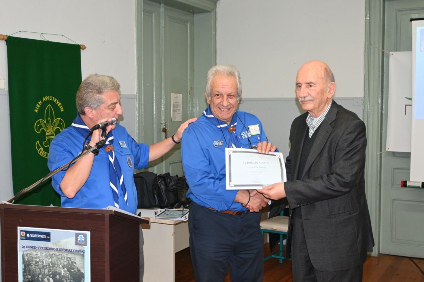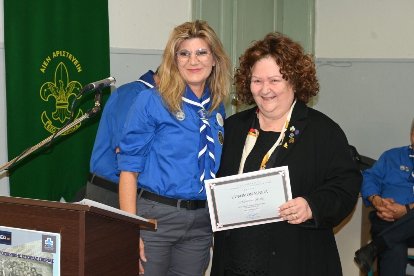 Στο πλαίσιο αυτό, κλήθηκαν ιστορικά στελέχη, κυρίως αρχηγοί των Συστημάτων Προσκόπων Πιερίας καθώς και γυναίκες του Σώματος Ελληνίδων Οδηγών (ΣΕΟ), να καταθέσουν ζωντανές αναμνήσεις μέσα από την πορεία τους στο προσκοπικό κίνημα και, στη συνέχεια, να παραλάβουν, εύφημες μνείες για το έργο που προσέφεραν στο προσκοπικό κίνημα, έργο που αποτυπώθηκε και σε διαφάνειες. Επίσης, παρουσία συγγενικών τους προσώπων, ανασύρθηκαν μνήμες για στελέχη που δεν βρίσκονται σήμερα εν ζωή.