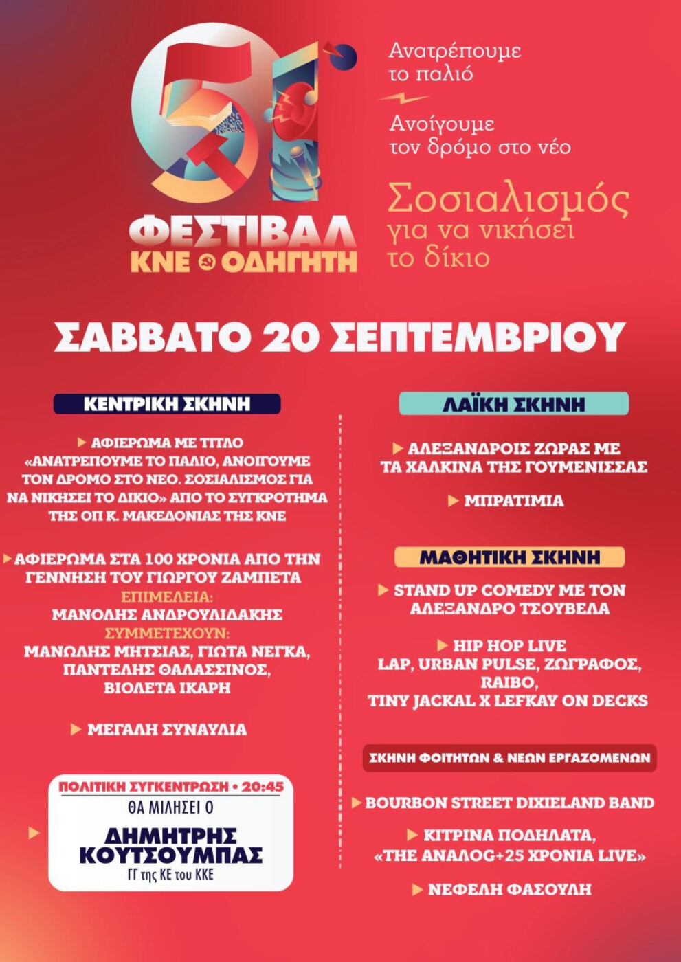 Όλα έτοιμα για το άνοιγμα των εκδηλώσεων του 51ου Φεστιβάλ ΚΝΕ – Οδηγητή στη Θεσσαλονίκη, στο πρώην στρατόπεδο Καρατάσιου, στην Πολίχνη.