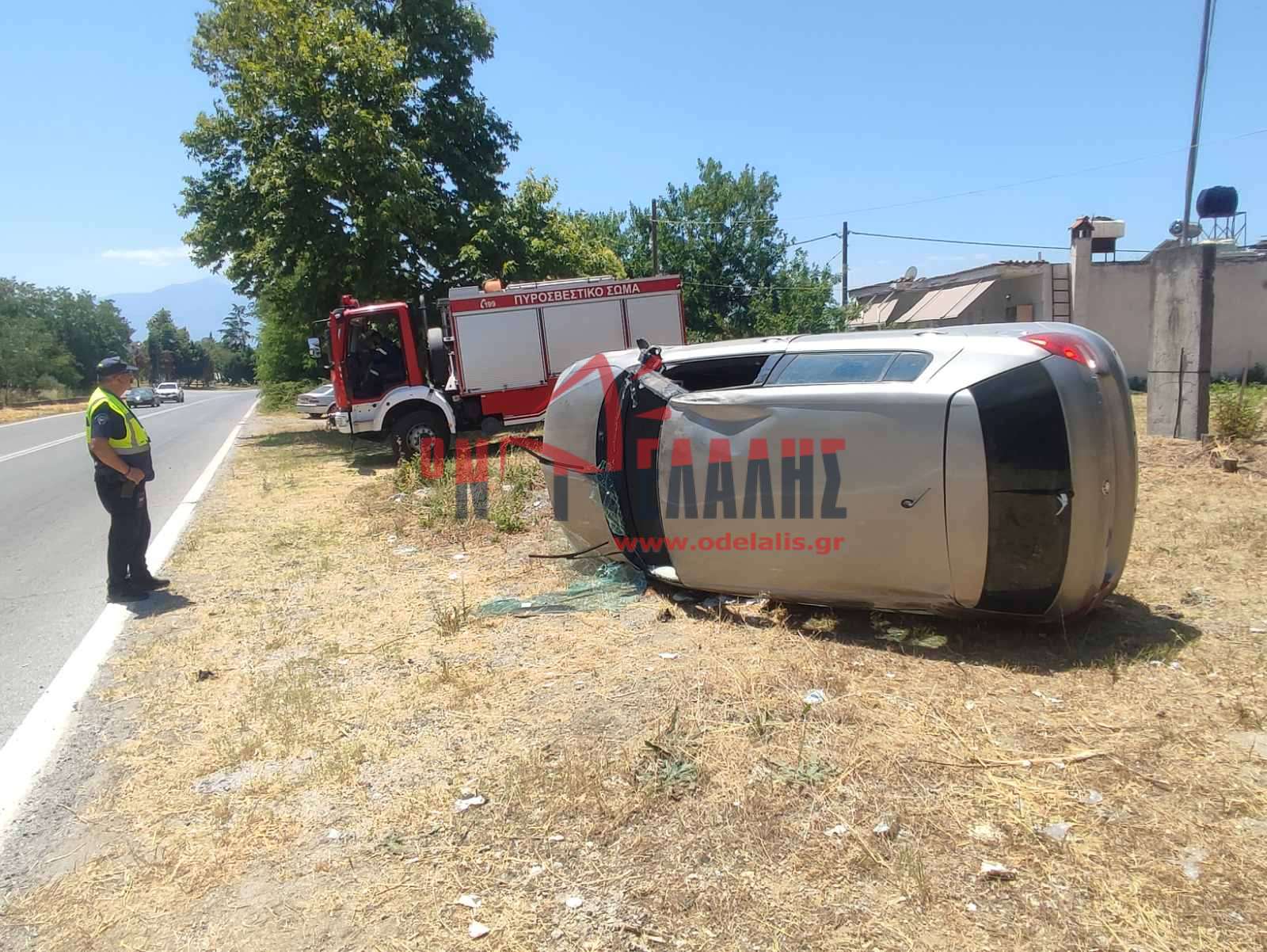 Ανατροπή οχήματος στο δρόμο προς Κορινό με επιβαίνοντες μητέρα και γιο (vid)