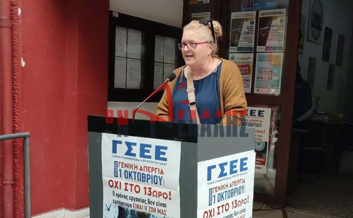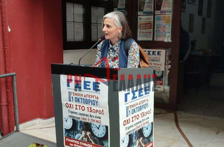 Η πρόεδρος του Εργατικού Κέντρου, Δέσποινα Κωνσταντίνου, παρουσίασε το διεκδικητικό πλαίσιο, το οποίο περιλαμβάνει αιτήματα που αγγίζουν τον πυρήνα της καθημερινότητας των εργαζομένων: