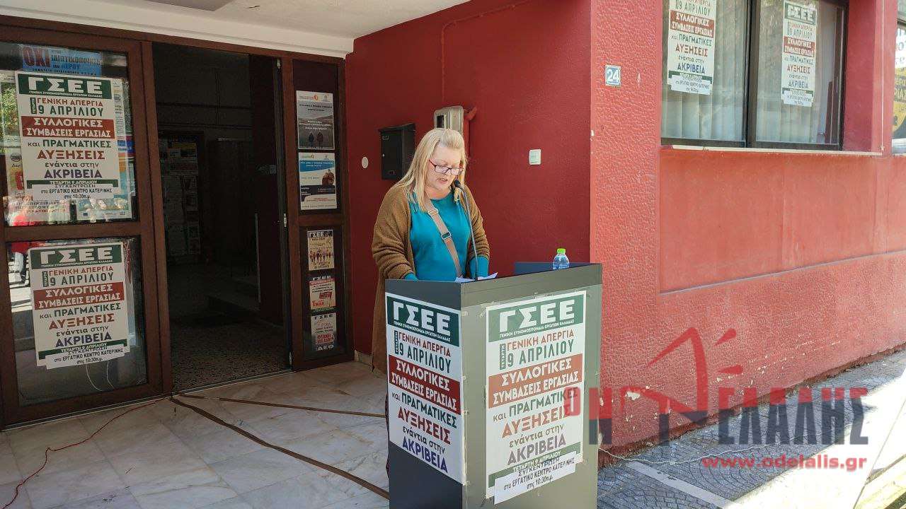 Σε μια συγκέντρωση διαμαρτυρίας ενάντια στην «ανελέητη» ακρίβεια, εργαζόμενοι, άνεργοι και συνταξιούχοι της Κατερίνης συγκεντρώθηκαν το πρωί στο Εργατοϋπαλληλικό Κέντρο. Η 24ωρη πανελλαδική απεργία ανέδειξε την αντίθεσή τους για την κυβερνητική πολιτική που, όπως τόνισε στην ομιλία της η πρόεδρος του ΕΚΚ Δέσποινα Κωνσταντίνου, εξανεμίζει τα εισοδήματα και οδηγεί σε ασφυξία. Οι διαδηλωτές, στο ομόφωνο ψήφισμά που ενέκριναν στο τέλος της συγκέντρωσης, απαιτούν άμεσα μέτρα στήριξης και αυξήσεις στους μισθούς, στέλνοντας ένα μήνυμα προς κάθε κατεύθυνση ότι η επιβίωση δεν είναι πολυτέλεια.