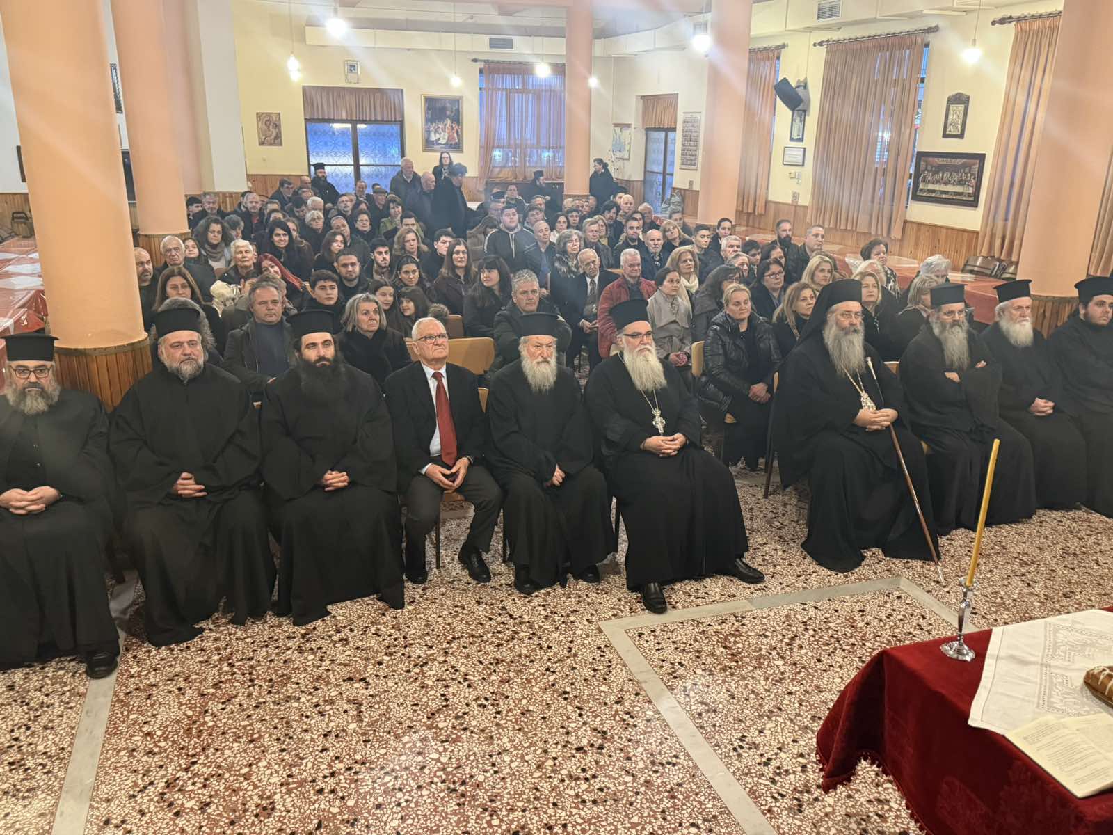 Ο Σεβασμιώτατος Μητροπολίτης κ. Γεώργιος, απευθυνόμενος στους παρευρισκομένους, ευχήθηκε σε όλους καλή και ευλογημένη χρονιά, εκφράζοντας θερμές ευχαριστίες για τη συμβολή και την προσφορά τους στο πολυσχιδές έργο της Εκκλησίας, τόσο σε πνευματικό όσο και σε κοινωνικό επίπεδο.