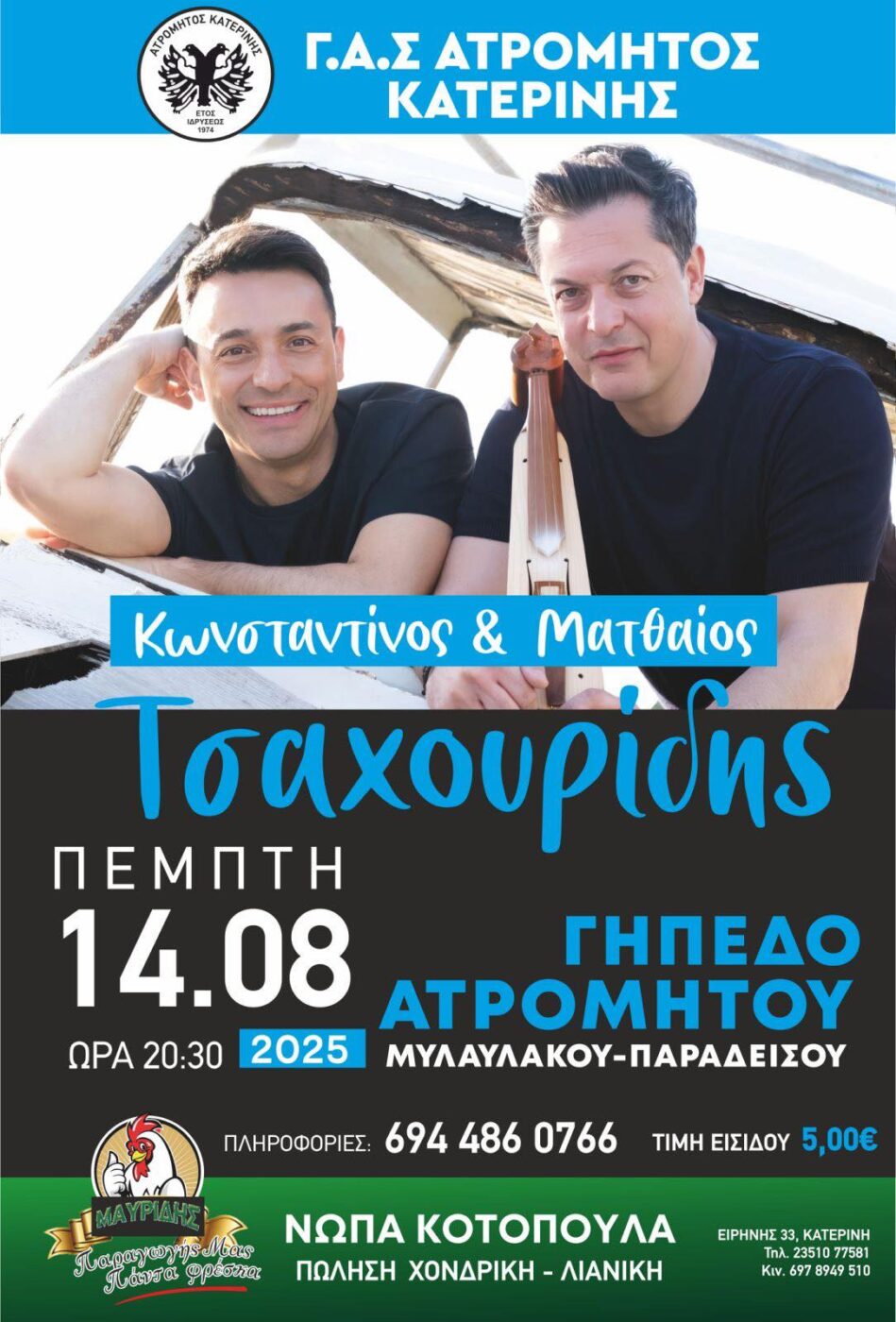 Θεσμοθετήθηκε από πέρυσι και υλοποιείται και φέτος αλλά και θε έχει συνέχεια, το «Διήμερο Πολιτισμού 2025» ενός δραστήριου και παραγωγικού σωματείου της Πιερίας, του Γυμναστικού Αγωνιστικού Συλλόγου Κατερίνης «Ο Ατρόμητος».