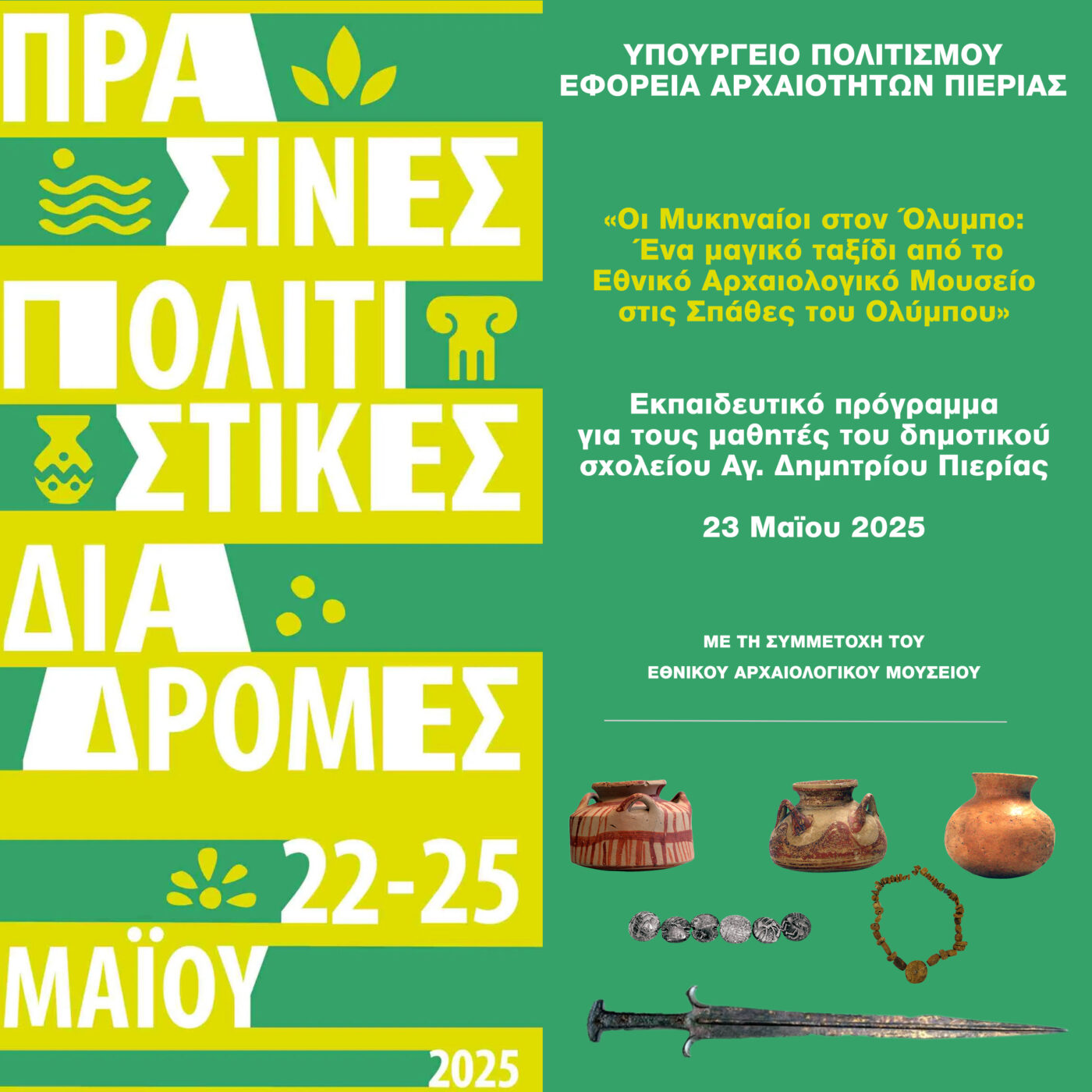 Το εκπαιδευτικό πρόγραμμα με τίτλο: «Οι Μυκηναίοι στον Όλυμπο: Ένα μαγικό ταξίδι από το Εθνικό Αρχαιολογικό Μουσείο στις Σπάθες του Ολύμπου» θα παρουσιαστεί στο Δημοτικό Σχολείο Αγίου Δημητρίου Πιερίας την...
