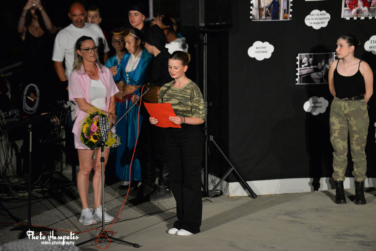 Η βραδιά έκλεισε με ένα δυνατό αντιπολεμικό μήνυμα, όπως το εξέφρασε η χοροδιδάσκαλος κ. Όλγα Μαστοροτασιού: «Ας γίνει η τέχνη το όπλο μας. Όχι για να χτυπήσουμε, αλλά για να ξυπνήσουμε.»