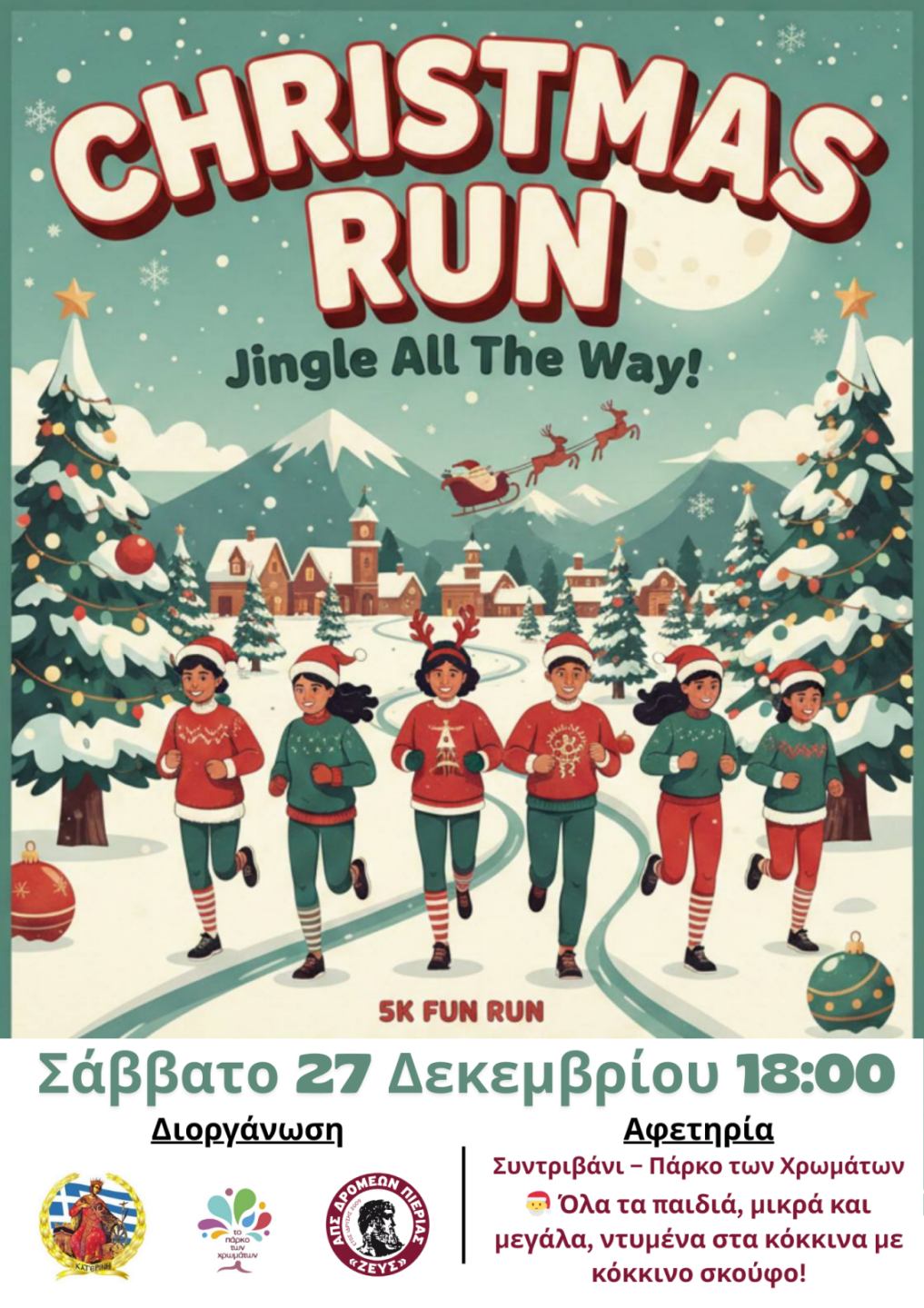 Παιδιά, οικογένειες και φίλοι καλούνται να τρέξουν ή να περπατήσουν, σε έναν αγώνα που ενώνει την άθληση με τη χαρά και το πνεύμα των Χριστουγέννων.