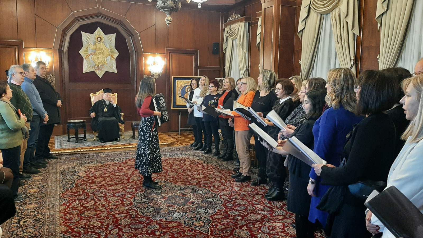 Κατά τη διάρκεια της επίσκεψης, η ΔΔΕ Πιερίας προσέφερε αναμνηστικά δώρα στον Οικουμενικό Πατριάρχη ως ένδειξη τιμής και ευγνωμοσύνης, ενώ η χορωδία της Διεύθυνσης απέδωσε τον Ακάθιστο Ύμνο, καθώς και δύο μουσικές επιλογές, προσφέροντας μια κατανυκτική και υψηλού επιπέδου καλλιτεχνική παρουσία. Ο Οικουμενικός Πατριάρχης απηύθυνε θερμούς λόγους προς την αποστολή υπογραμμίζοντας τη σημασία της διατήρησης της ελληνικής παιδείας και του πολιτισμού και ακολούθως προσέφερε την πατριαρχική του ευλογία.