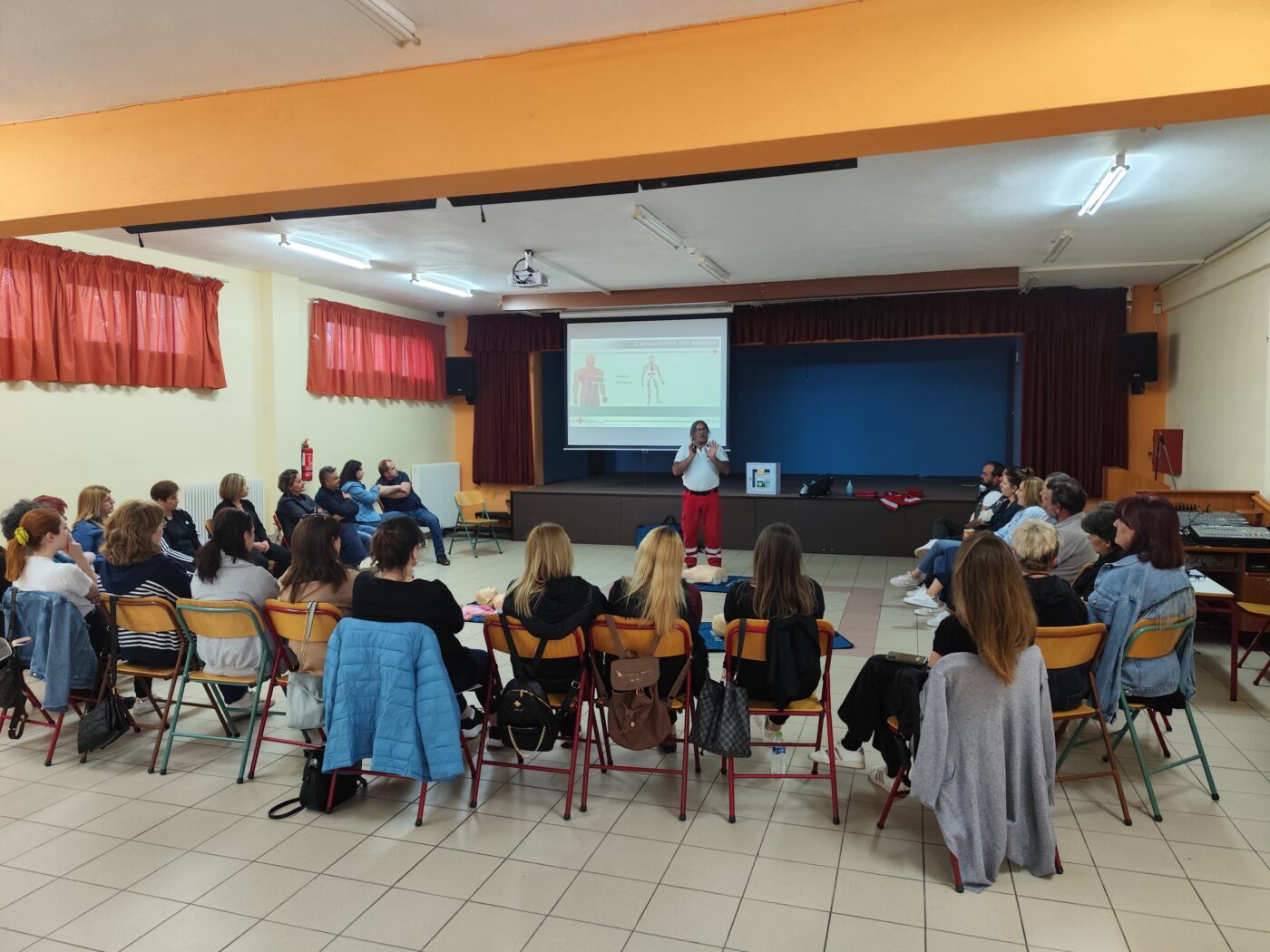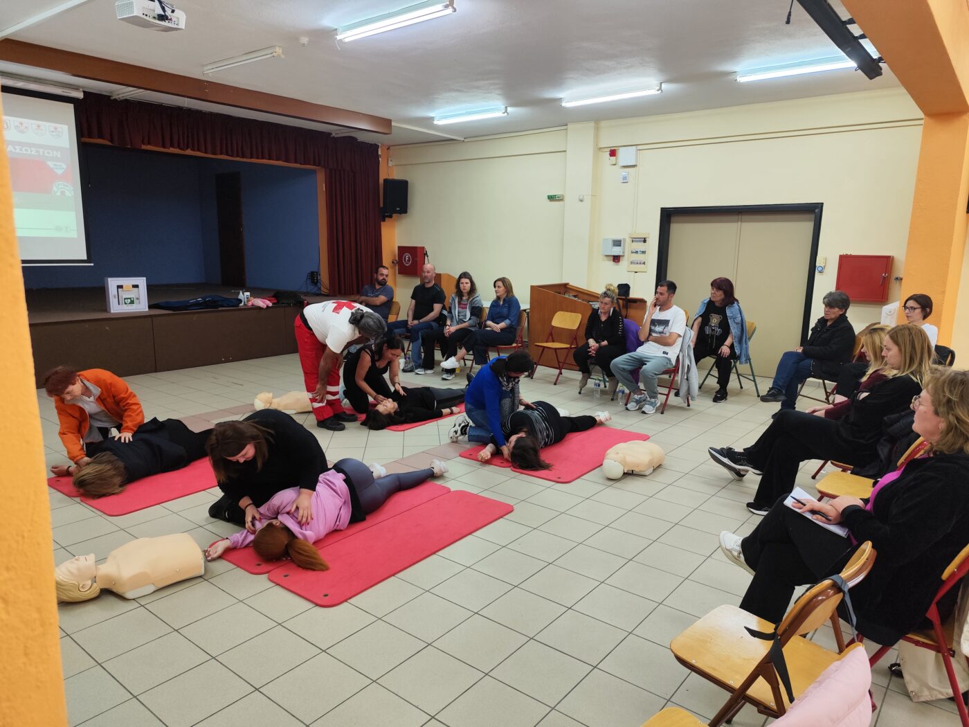 Η επιμόρφωση πραγματοποιήθηκε στην αίθουσα πολλαπλών χρήσεων του Δημοτικού Σχολείου Ρητίνης από τον Εκπαιδευτή Πρώτων Βοηθειών και CPR/AED του Τμήματος, κ. Κατιρτζή Δημήτριο.