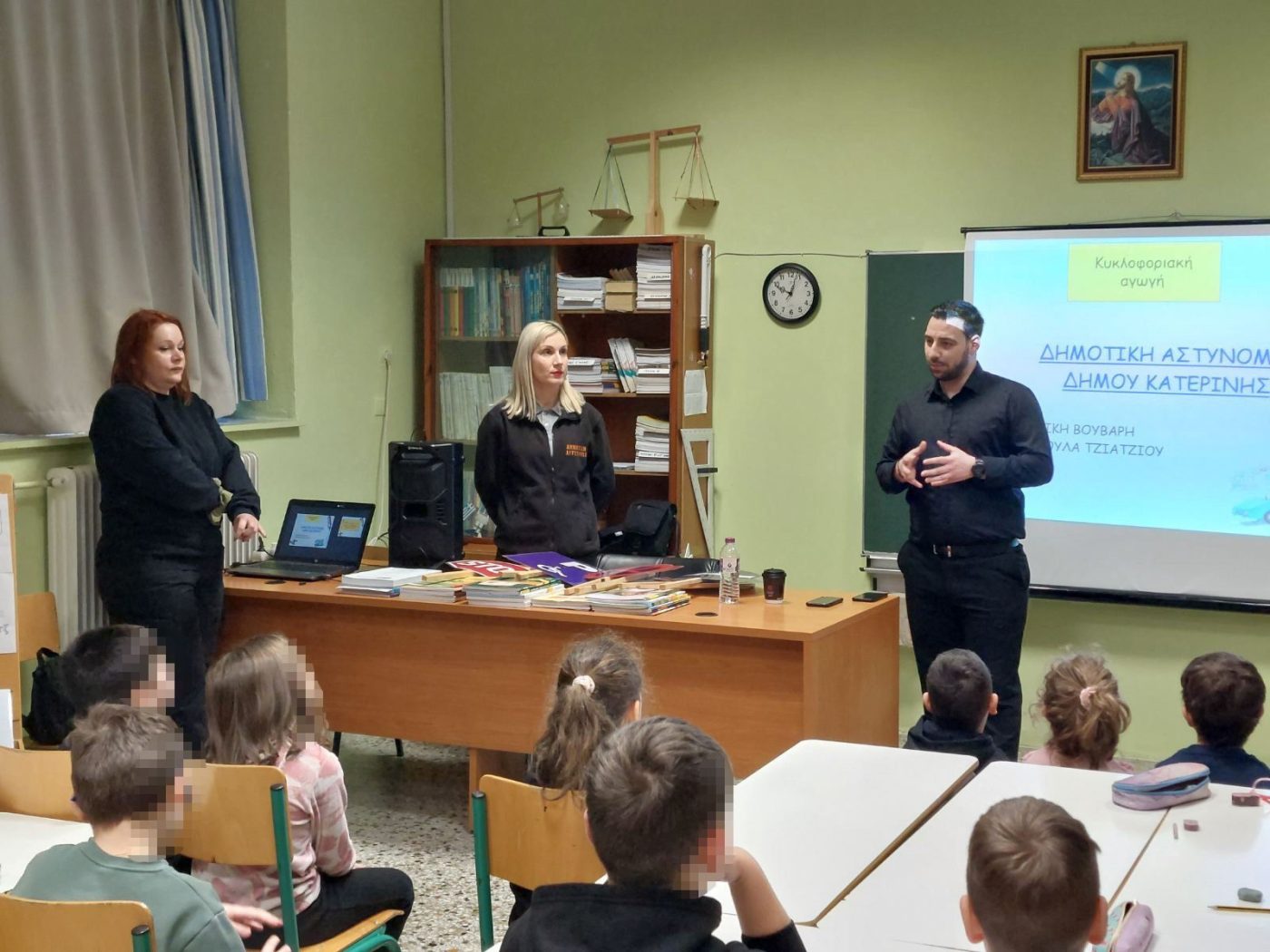 Η Δημοτική Αστυνομία Κατερίνης ξεκίνησε έναν κύκλο ενημερωτικών δράσεων στα σχολεία του Δήμου. Πρώτοι σταθμοί ήταν το Δημοτικό Σχολείο Αγίου Δημητρίου και το 10ο Δημοτικό Σχολείο Κατερίνης. Στόχος της πρωτοβουλίας είναι η ευαισθητοποίηση των παιδιών σε ζητήματα κυκλοφοριακής αγωγής. Μέσα από ζωντανό διάλογο, οι μαθητές έμαθαν να κινούνται με ασφάλεια ως πεζοί και ποδηλάτες.