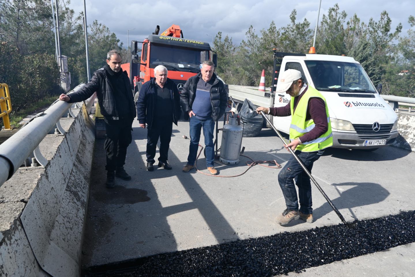 Ολοκληρώνονται από τις τεχνικές υπηρεσίες του Δήμου Κατερίνης, οι εργασίες ανακατασκευής αρμών σε τρεις γέφυρες (άνω σιδηροδρομικών διαβάσεων του ΟΣΕ), στην Περίσταση, στο δρόμο προς την Ολυμπιακή Ακτή και στον Κορινό.