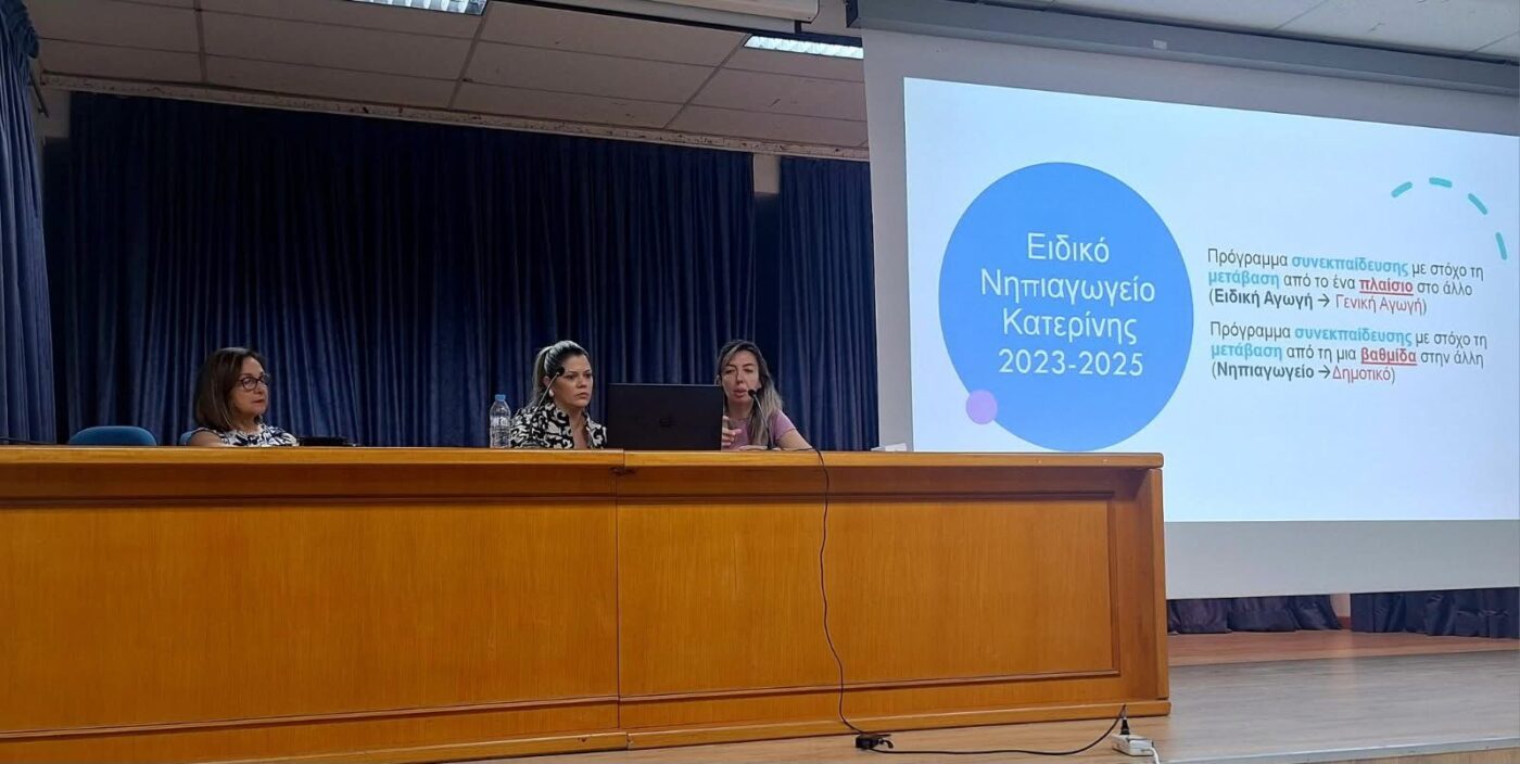 Την Πέμπτη 19 Ιουνίου 2025 πραγματοποιήθηκε η ημερίδα με τίτλο «Εκπαιδευτικές Δράσεις Εξωστρέφειας», στο πλαίσιο της πράξης «Ενέργειες προγραμματισμού του εκπαιδευτικού έργου των νηπιαγωγείων για το σχολικό έτος 2025-2026 – Προγραμματισμός λειτουργίας ολοήμερου προγράμματος και νέων αναβαθμισμένων προγραμμάτων νηπιαγωγείου», η οποία διοργανώθηκε από τη σύμβουλο εκπαίδευσης ΠΕ60 της Διεύθυνσης Πρωτοβάθμιας Εκπαίδευσης Πιερίας.