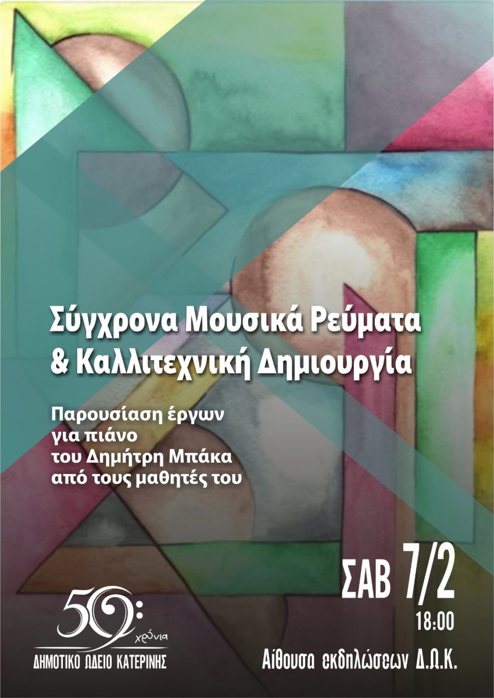 Δημοτικό Ωδείο Κατερίνης: Σύγχρονα Μουσικά Ρεύματα & Καλλιτεχνική Δημιουργία/Παρουσίαση έργων για πιάνο του Δημήτρη Μπάκα από τους μαθητές του