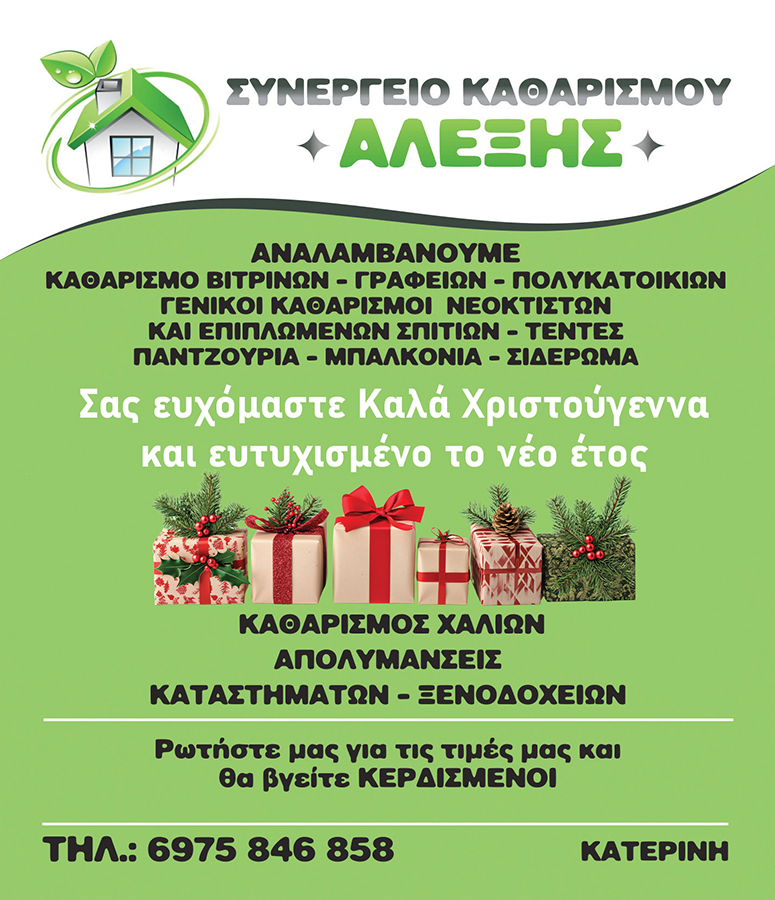 Ευχές για Καλά Χριστούγεννα από το Συνεργείο καθαρισμού «ΑΛΕΞΗΣ»