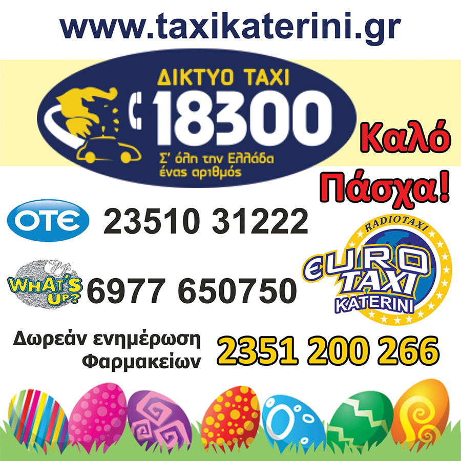 Ειδήσεις Ευχές για καλό Πάσχα από τα EURO TAXI Κατερίνης Μαρία Ιωαννίδου, 8 Απριλίου, 2025 1 λεπτά ανάγνωσης Tags #EURO TAXI #odelalis #www.taxikaterini.gr #δικτυο taxi #ευχές #Καλό Πάσχα Life Εορτολόγιο: Ποιος γιορτάζει σήμερα Life, Τοπικά Νέο Φυλλάδιο με δυνατές προσφορές στα ΠΙΤΣΙΑΣ ΜΑΡΚΕΤ από 20/03 έως & 09/04 Σχετικά άρθρα Ειδήσεις Τατόι 2026: Αντίστροφη μέτρηση για τα εγκαίνια του ανακτόρου ως μουσείο 1 λεπτά ανάγνωσης Featured, Ειδήσεις Ευλογιά αιγοπροβάτων: Σχεδόν μισό εκατομμύριο ζώα έχουν θανατωθεί 1 λεπτά ανάγνωσης Ειδήσεις Η JYSK αποκτά την πιστοποίηση Top Employer Europe 3 λεπτά ανάγνωσης Ειδήσεις Πληρωμές αγροτικών επιδοτήσεων 27,8 εκατ. ευρώ από την ΑΑΔΕ 2 λεπτά ανάγνωσης Ειδήσεις Φορολογικές δηλώσεις 2026 – Οδηγός για στοιχεία και αφορολόγητα ποσά 2 λεπτά ανάγνωσης Ειδήσεις Παράταση για την Ηλεκτρονική Ταυτότητα Ακινήτου και τα αυθαίρετα 2 λεπτά ανάγνωσης