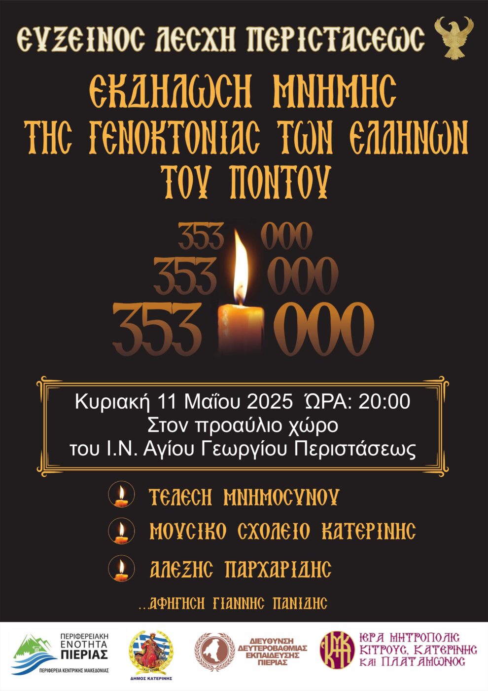 Εύξεινος Λέσχη Περιστάσεως – Εκδήλωση Μνήμης της Γενοκτονίας των Ελλήνων του Πόντου