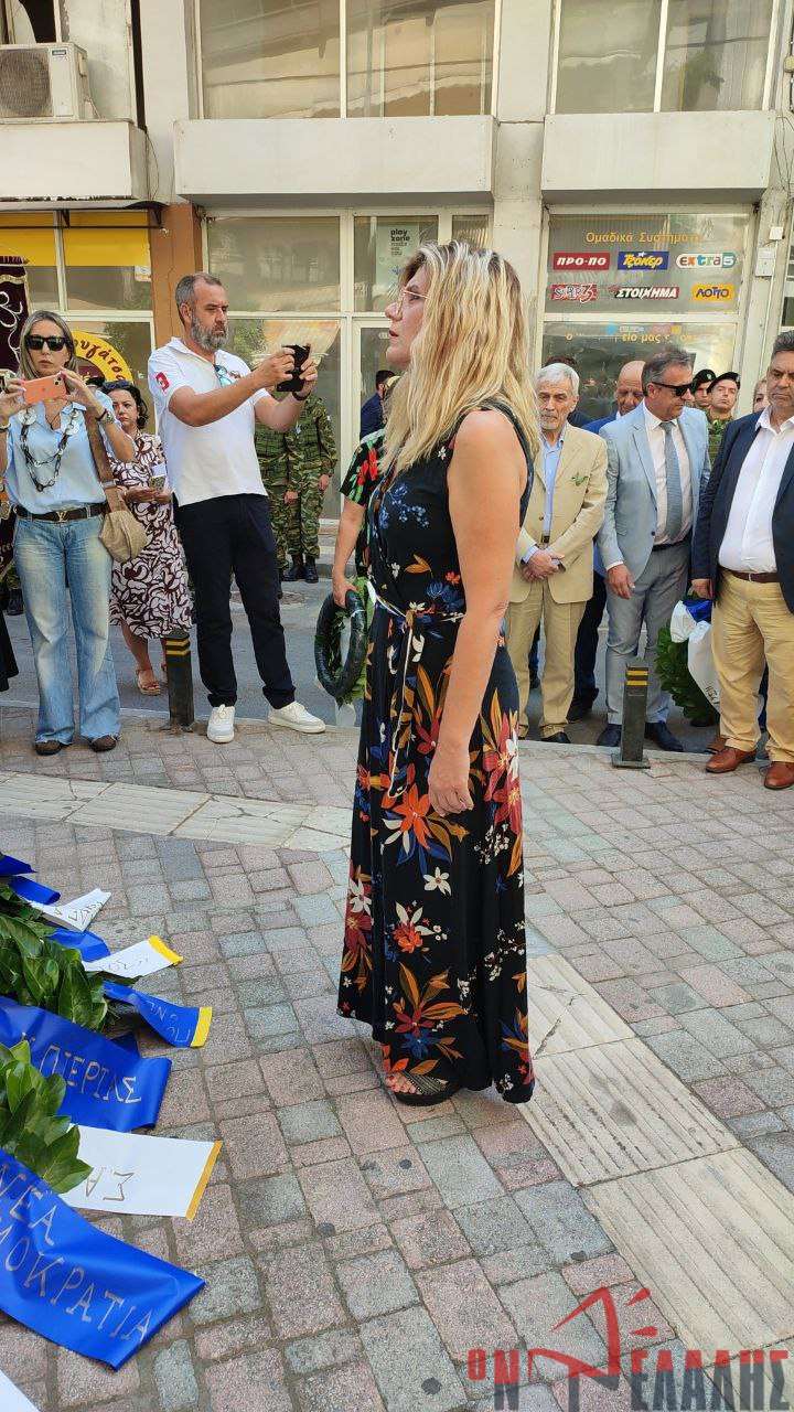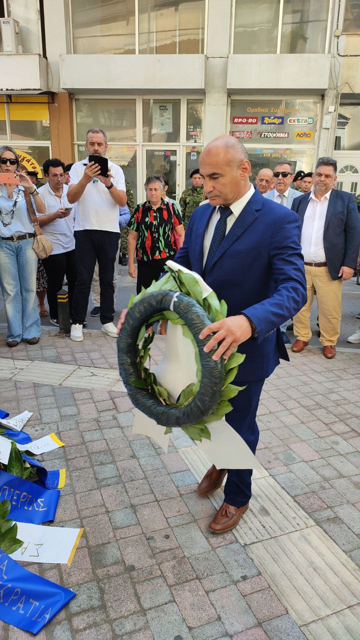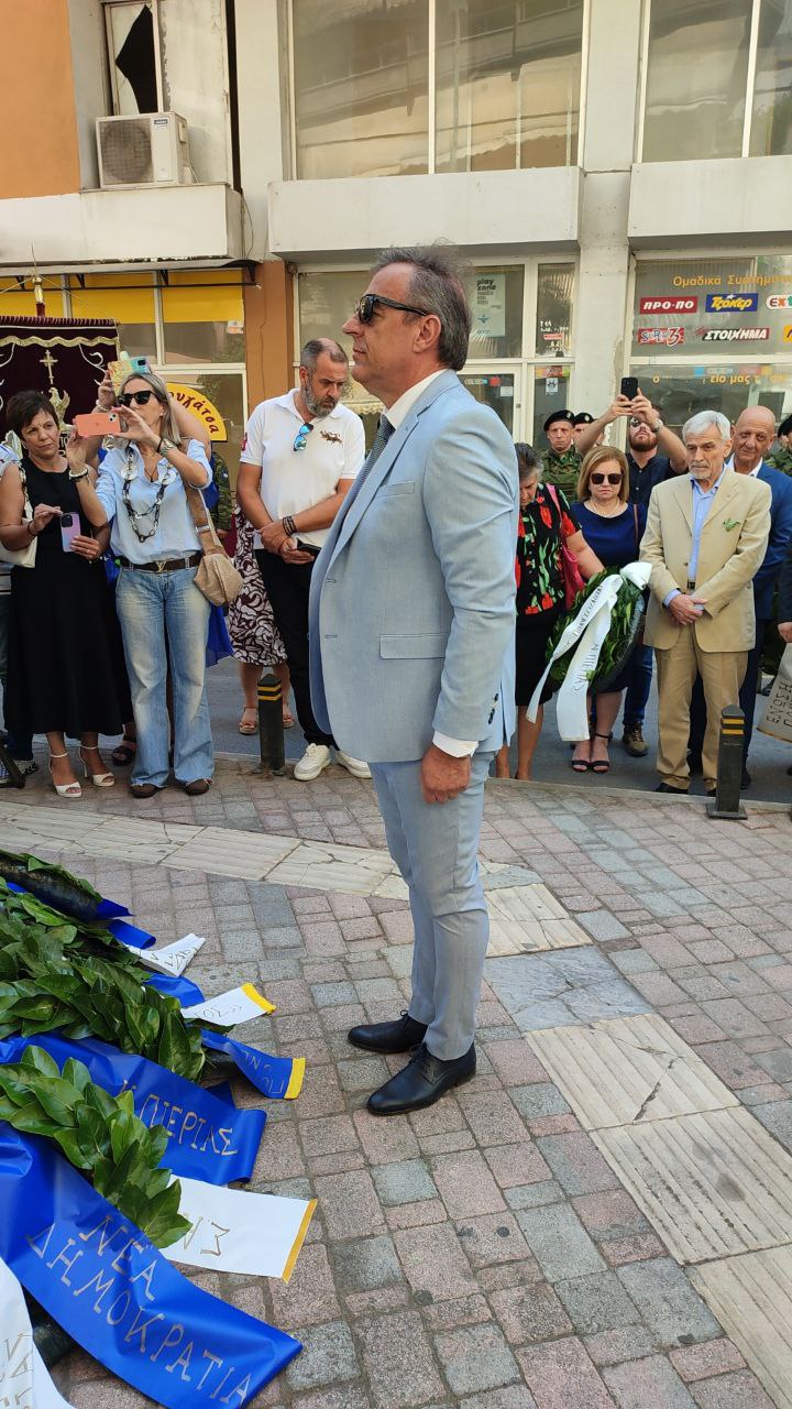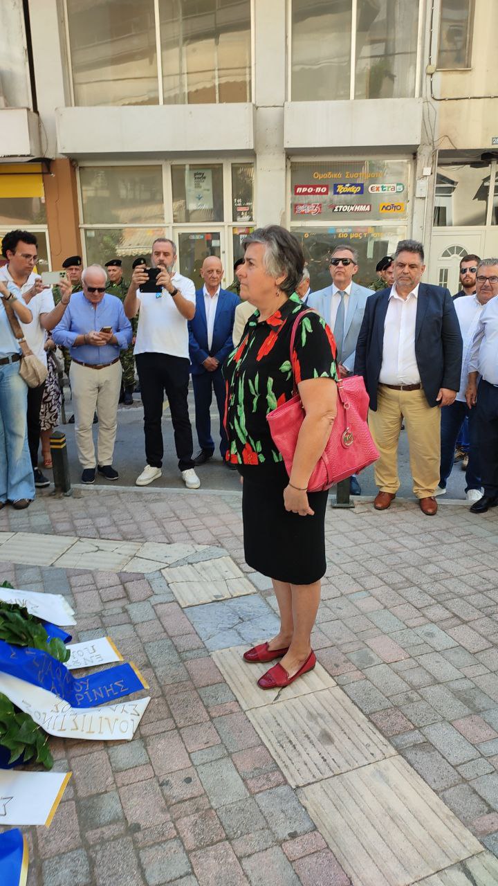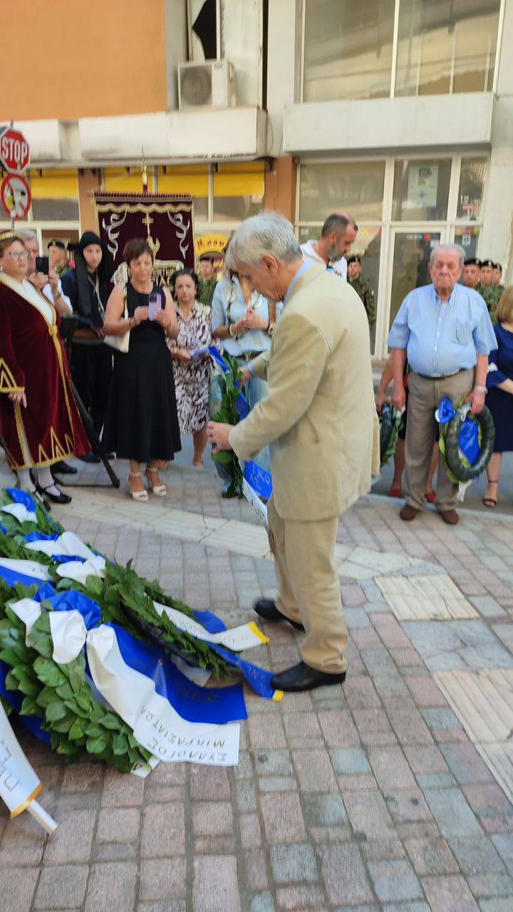 Στεφάνια κατέθεσαν, ο Γενικός Γραμματέας του Υπουργείου Εσωτερικών, Σάββας Χιονίδης, εκπροσωπώντας την κυβέρνηση, ο βουλευτής Πιερίας Σπύρος Κουλκουδίνας, εκπρόσωπος της Βουλής, η Αντιπεριφερειάρχης Πιερίας, Σοφία Μαυρίδου, ο δήμαρχος Κατερίνης, Γιάννης Ντούμος, ο Αθανάσιος Καλαίτζης, εκπρόσωπος του δημάρχου Δίου–Ολύμπου, ο Διοικητής της 24ης Τεθωρακισμένης Ταξιαρχίας Λιτοχώρου, Ταξίαρχος Αθανάσιος Τζήκας, ο Αστυνομικός Υποδιευθυντής Πιερίας, Κωνσταντίνος Παπανικολάου, ο Διοικητής Πυροσβεστικών Υπηρεσιών, Πύραρχος Δημήτριος Κραγιόπουλος, εκπρόσωπος του Λιμεναρχείου Σκάλας Κατερίνης, ο Πρόεδρος του Συλλόγου Μικρασιατών Πιερίας, Αναστάσιος Βογιατζής, ο Σύλλογος Μικρασιατών Νέας Εφέσου «Ο Ηράκλειτος».