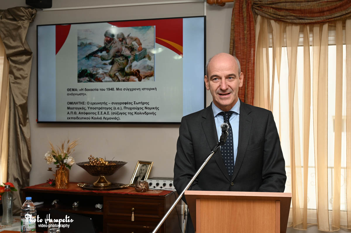 Το θέμα της ήταν: «Η δεκαετία του 1940. Μια σύγχρονη ιστορική ανάγνωση» και ομιλητής της ήταν ο ερευνητής και συγγραφέας Σωτήρης Μασταγκάς, Υποστράτηγος (ε.α.), Πτυχιούχος Νομικής Α.Π.Θ, Απόφοιτος Σ.Σ.Α.Σ. (σύζυγος της Κολινδρινής εκπαιδευτικού Κοιλιά Λεμονιάς).