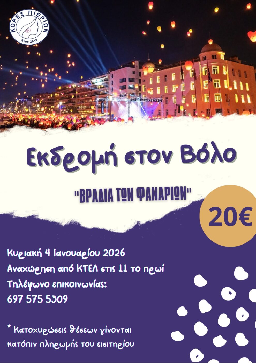 Ο Σύλλογος Κόρες Πιερίων διοργανώνει εκδρομή στον μαγευτικό Βόλο, για να ζήσουμε όλοι μαζί τη μοναδική Βραδιά των Φαναριών