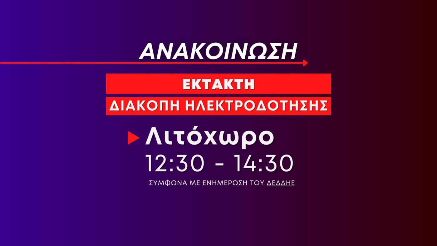 Έκτακτη διακοπή ηλεκτροδότησης σήμερα στο Λιτόχωρο