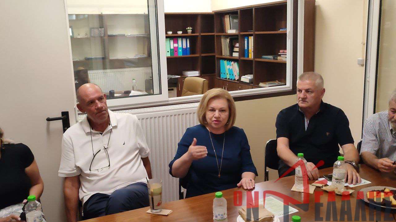 Το κλιμάκιο, στο οποίο συμμετείχαν επίσης τα στελέχη Μυρτώ Οικονόμου Σαμαρά και Σταυρούλα Μιχαλοπούλου, συνοδευόταν από τον Γραμματέα της ΝΕ Πιερίας, Δημήτρη Λιόλιο, την πρώην βουλευτή και μέλος της Κεντρικής Επιτροπής Μαρία Μίχου, Kώστα Κιτιξή μέλος της Κεντρικής Επιτροπής και ο πολιτευτής Κωνσταντίνος Κουτρούπας, μαζί με άλλα τοπικά στελέχη του κόμματος.