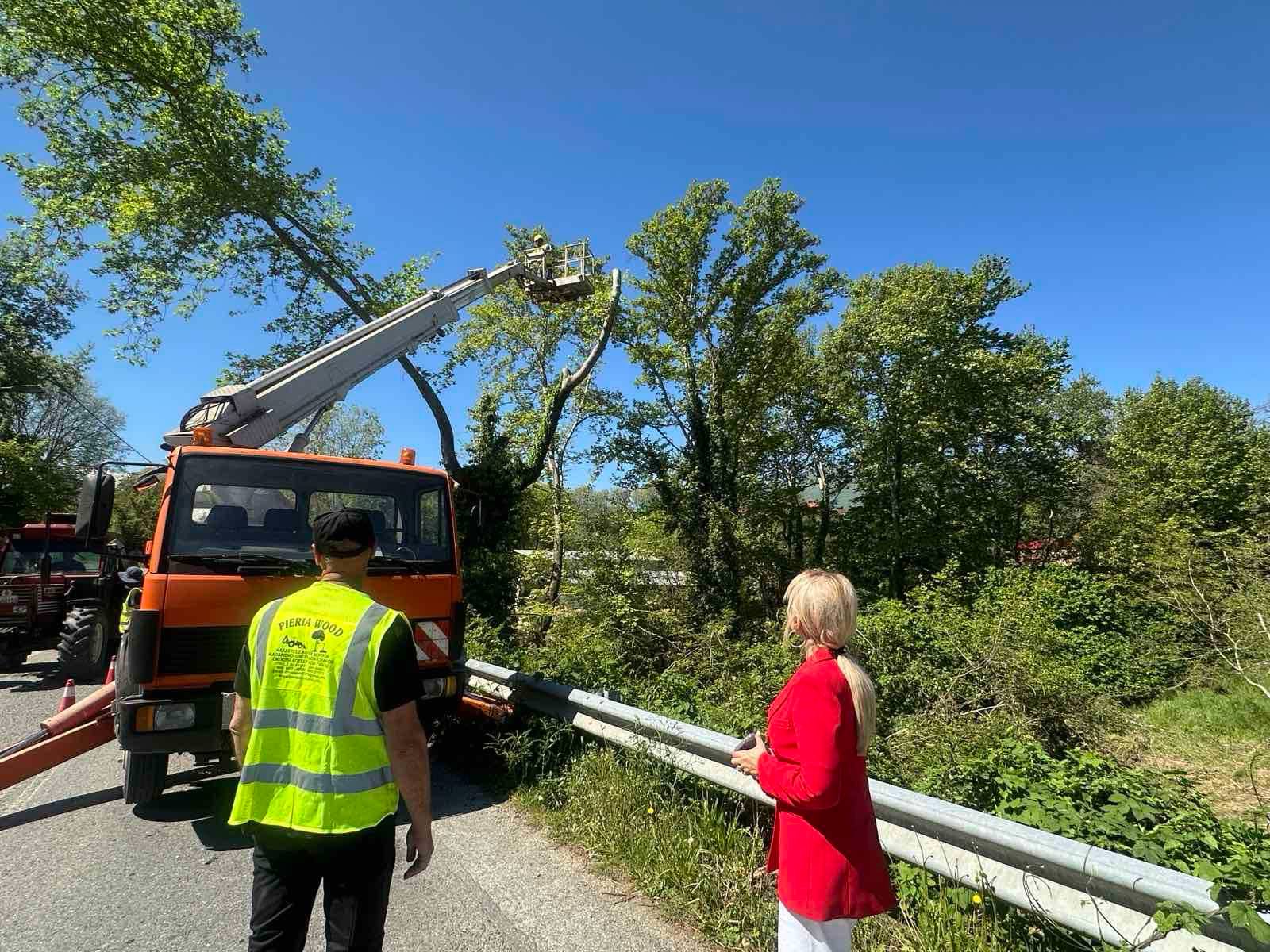 Η Αντιπεριφερειάρχης Πιερίας, κα Σοφία Μαυρίδου, βρέθηκε σε αυτοψία εργασιών κοπής πλατάνων συνοδευόμενη από τον συνεργάτη της, κο Χρήστο Τσινίκο, στην Κάτω Μηλιά του Δήμου Κατερίνης.
