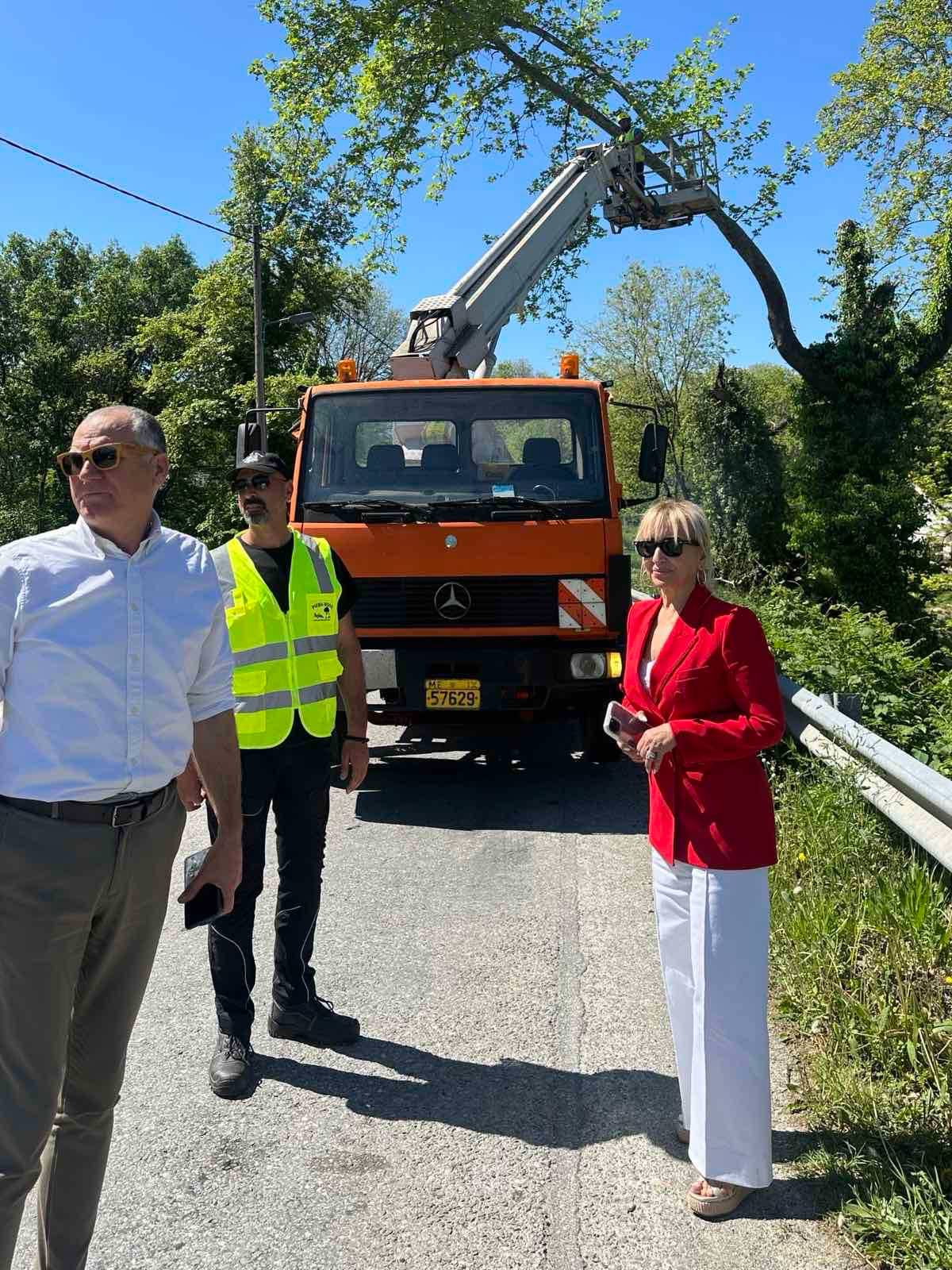 Η Αντιπεριφερειάρχης Πιερίας, κα Σοφία Μαυρίδου, βρέθηκε σε αυτοψία εργασιών κοπής πλατάνων συνοδευόμενη από τον συνεργάτη της, κο Χρήστο Τσινίκο, στην Κάτω Μηλιά του Δήμου Κατερίνης.
