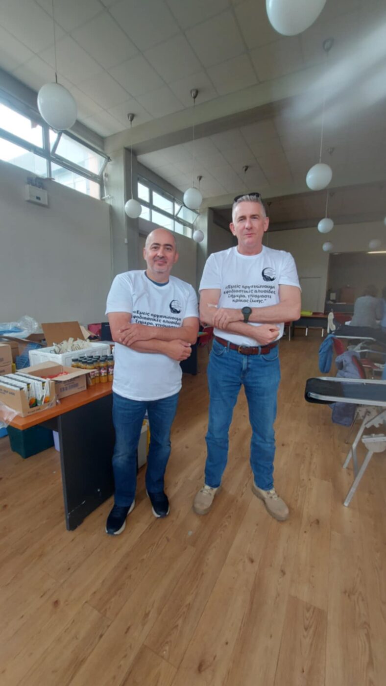 Η αιμοδοσία πραγματοποιήθηκε με την υποστήριξη του Γενικού Νοσοκομείου Κατερίνης – Τμήμα Αιμοδοσίας και του Συλλόγου Καρκινοπαθών Ν. Πιερίας – Όραμα Ελπίδας, καθώς και των εκπροσώπων του: