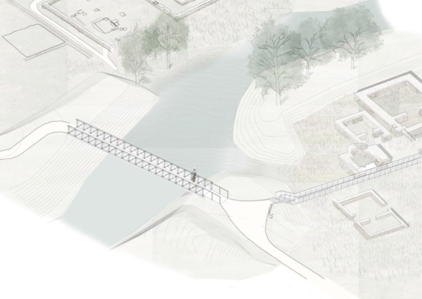 H νέα μεταλλική γέφυρα θα έχει άνοιγμα 25 μέτρων και πλάτος 2 μέτρων, θα είναι πλήρως προσβάσιμη και για άτομα με αναπηρία και αναμένεται να ολοκληρωθεί σύντομα, στο πλαίσιο των ευρύτερων αντιπλημμυρικών έργων προστασίας του αρχαιολογικού χώρου.