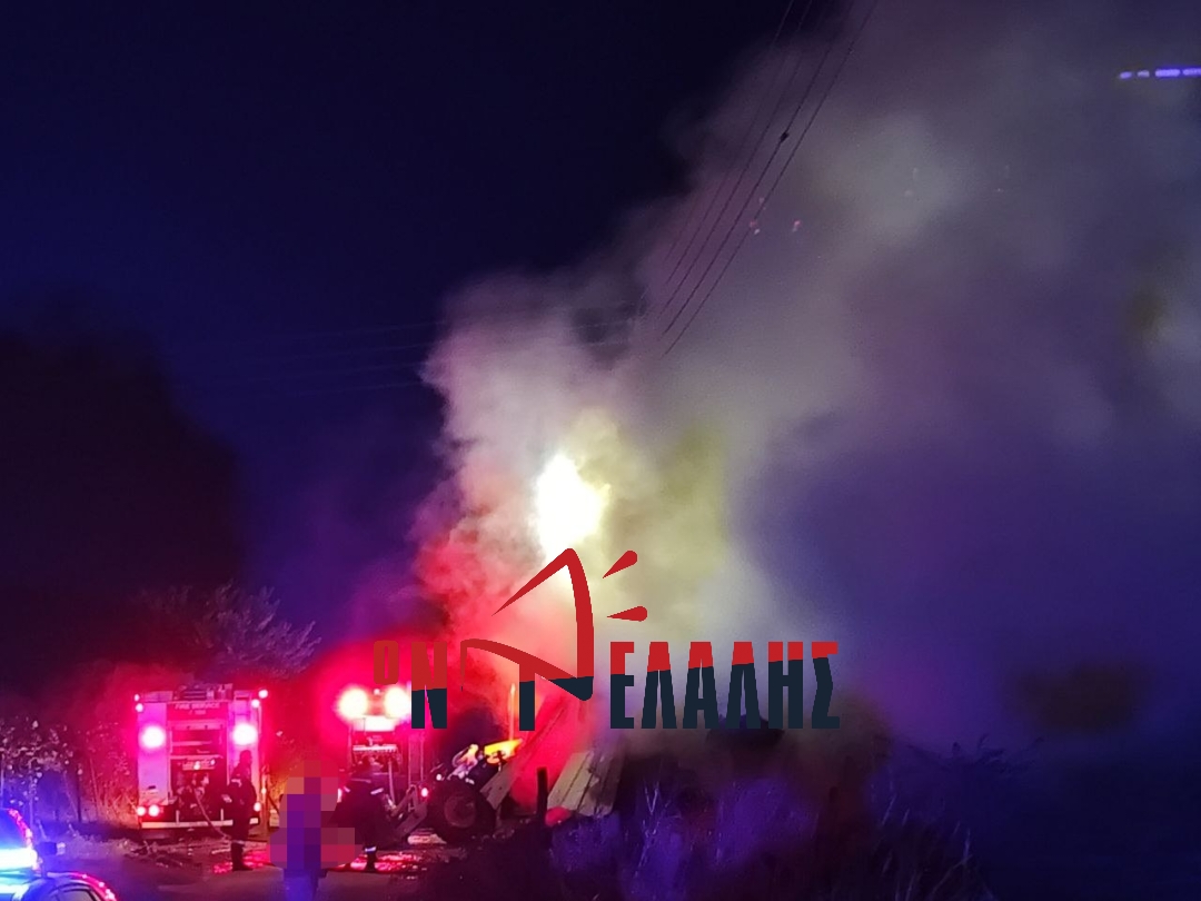 Φωτιά σε αγροτική αποθήκη με άχυρα και σανό στην Καλλιθέα Κατερίνης