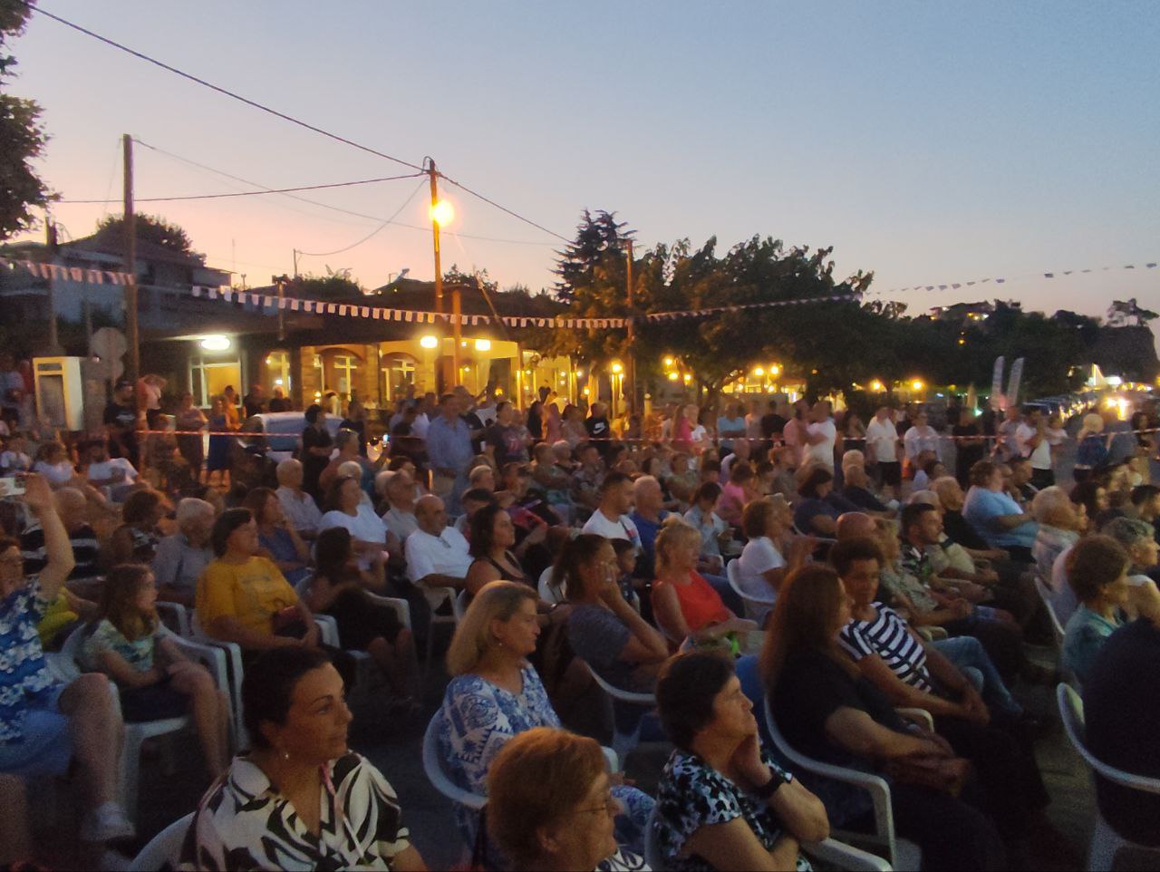 Η βραδιά κύλησε με άφθονο καλό μύδι, τοπικό τσίπουρο, ενώ ο ρυθμός ανέβηκε με δημοτικά και λαϊκά τραγούδια που παρέσυραν τον κόσμο σε πολύ χορό και διασκέδαση μέχρι αργά.