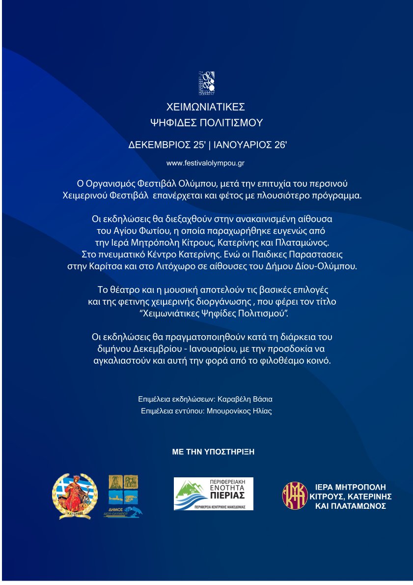 Το 54 Φεστιβάλ Ολύμπου και οι Χειμωνιάτικες Ψηφίδες Πολιτισμού