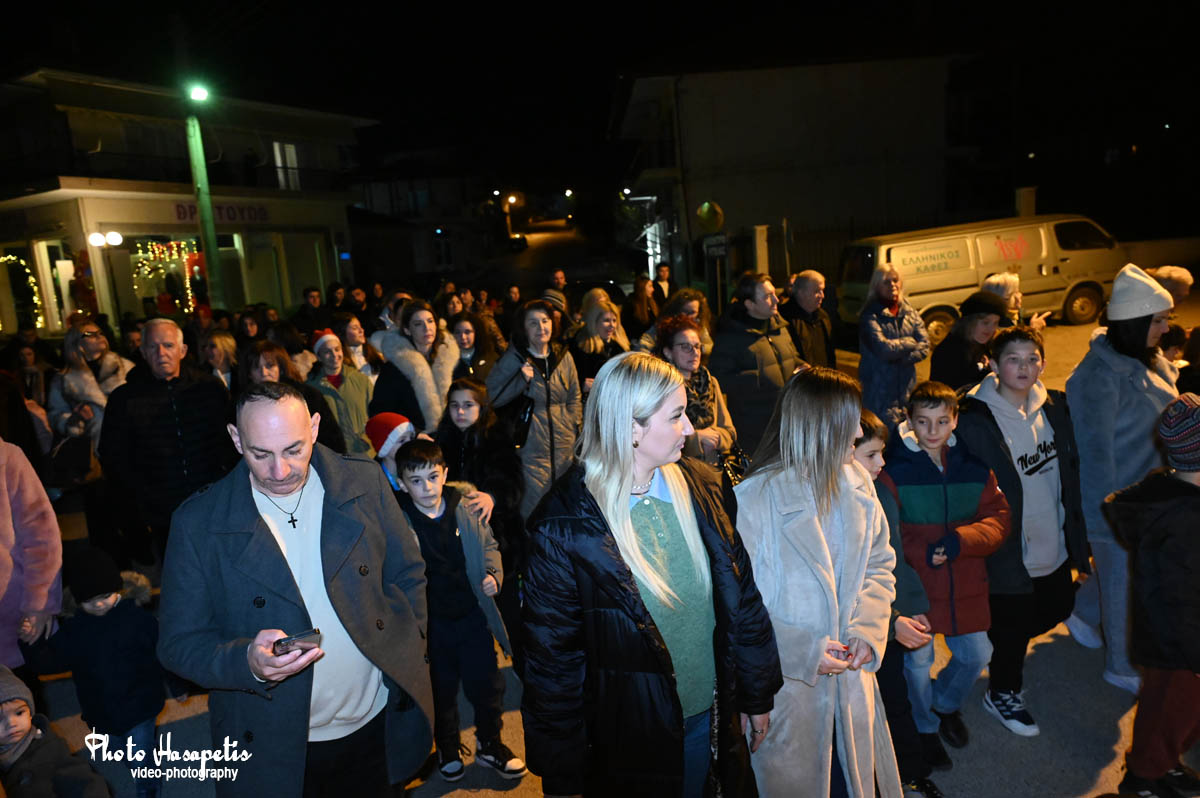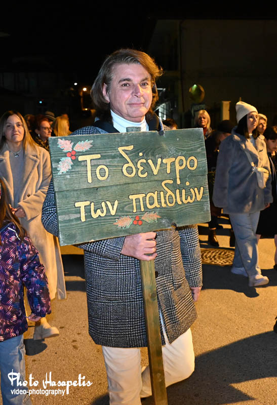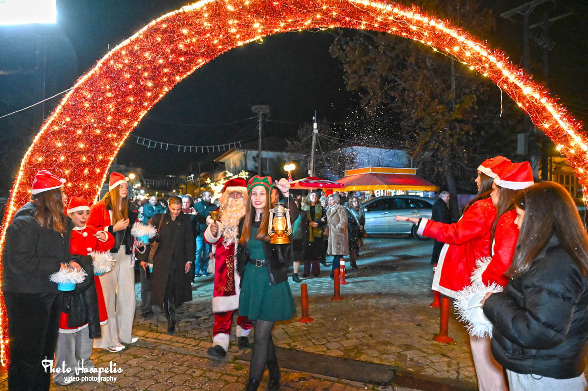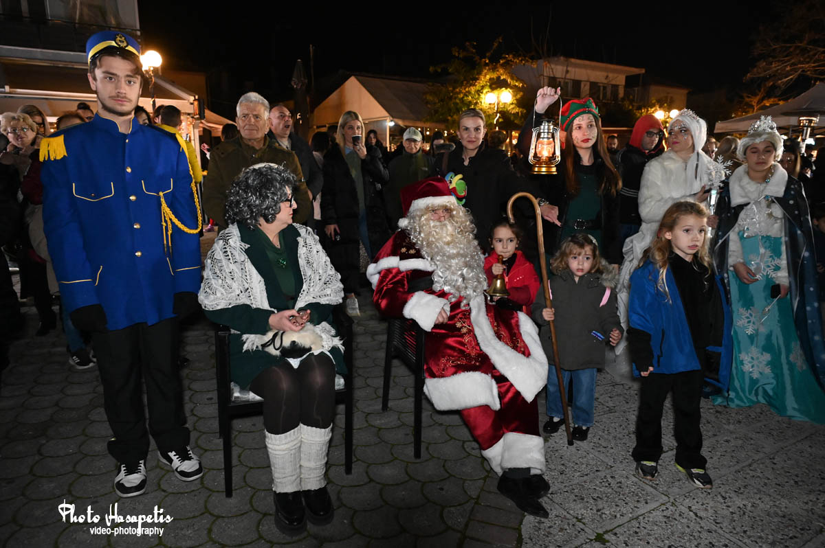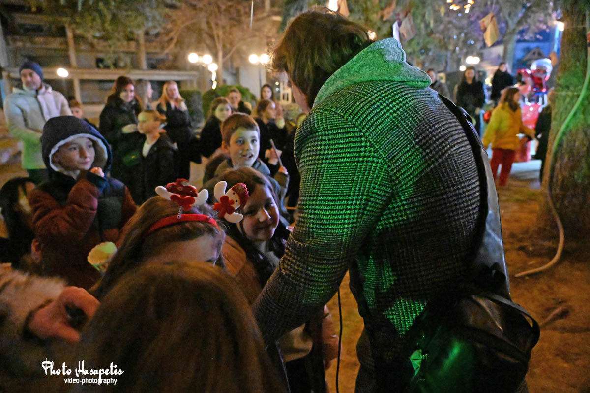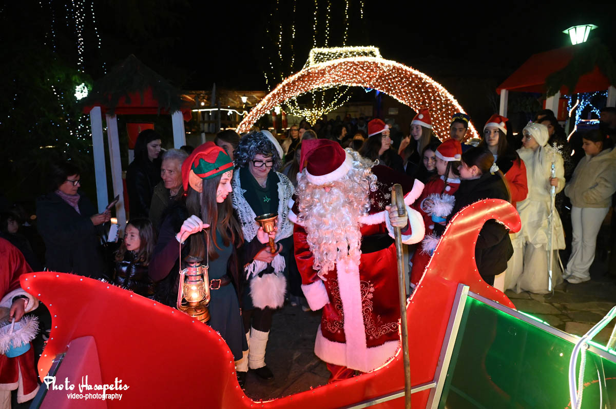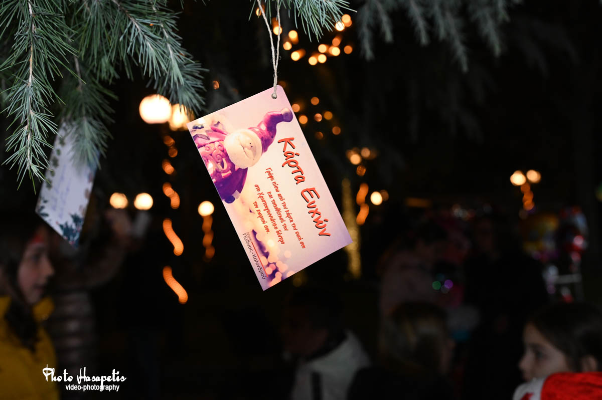 Ο Άγιος Βασίλης λίγο αργότερα έδωσε το έναυσμα, αφήνοντας την αυλή συνοδευόμενος από πλήθος κόσμου και κάπως έτσι φτάνοντας στην κεντρική πλατεία, άναψε και το δέντρο των παιδιών, αφού πρώτα στολίστηκε με τις κάρτες ευχών τους.