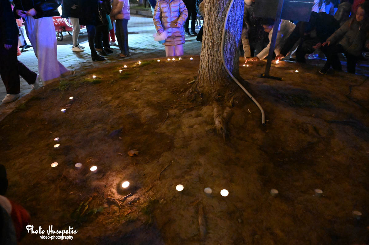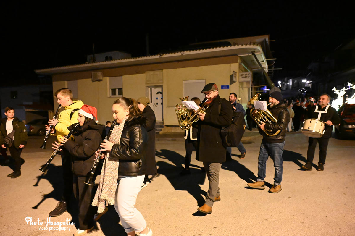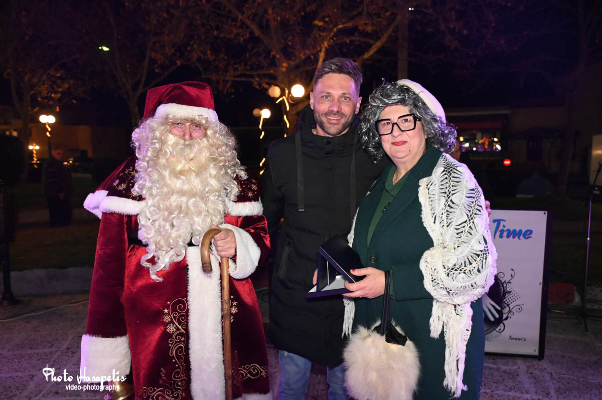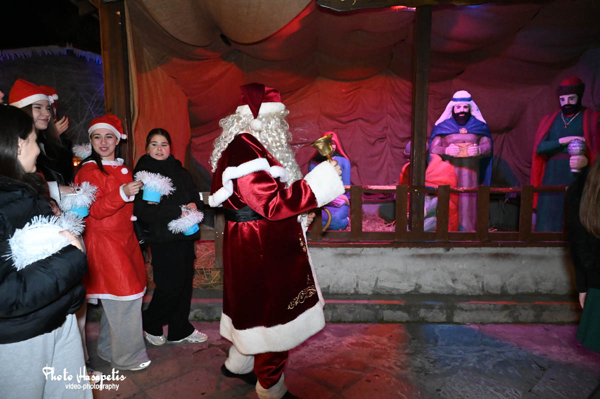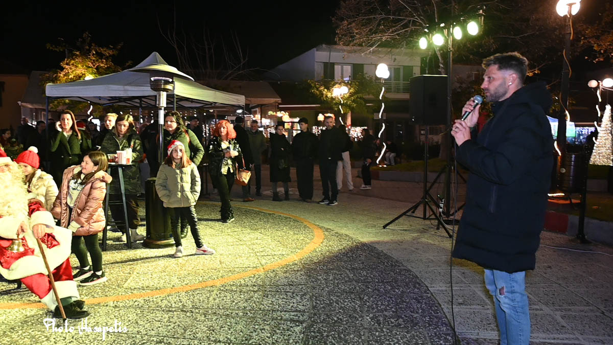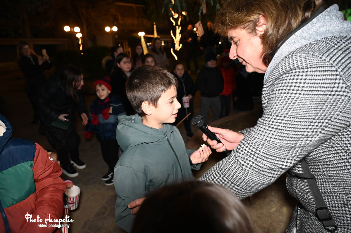 Ο Άγιος Βασίλης λίγο αργότερα έδωσε το έναυσμα, αφήνοντας την αυλή συνοδευόμενος από πλήθος κόσμου και κάπως έτσι φτάνοντας στην κεντρική πλατεία, άναψε και το δέντρο των παιδιών, αφού πρώτα στολίστηκε με τις κάρτες ευχών τους.