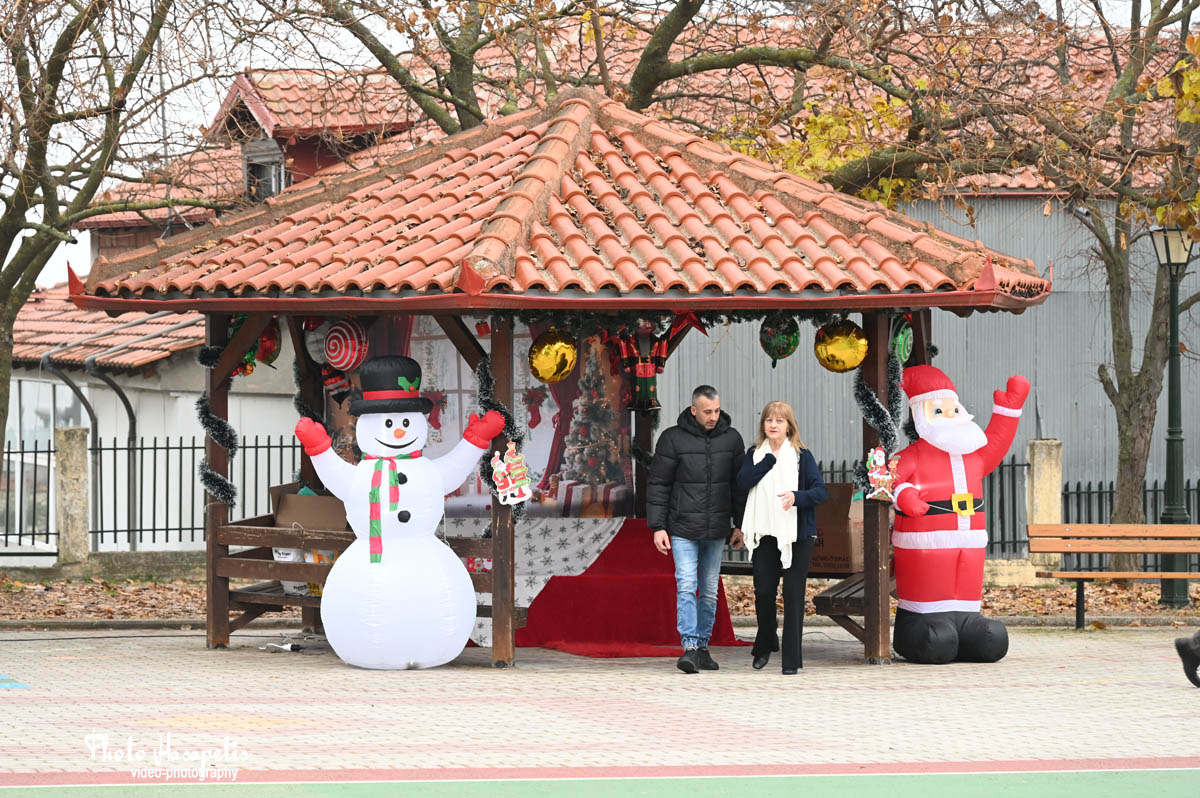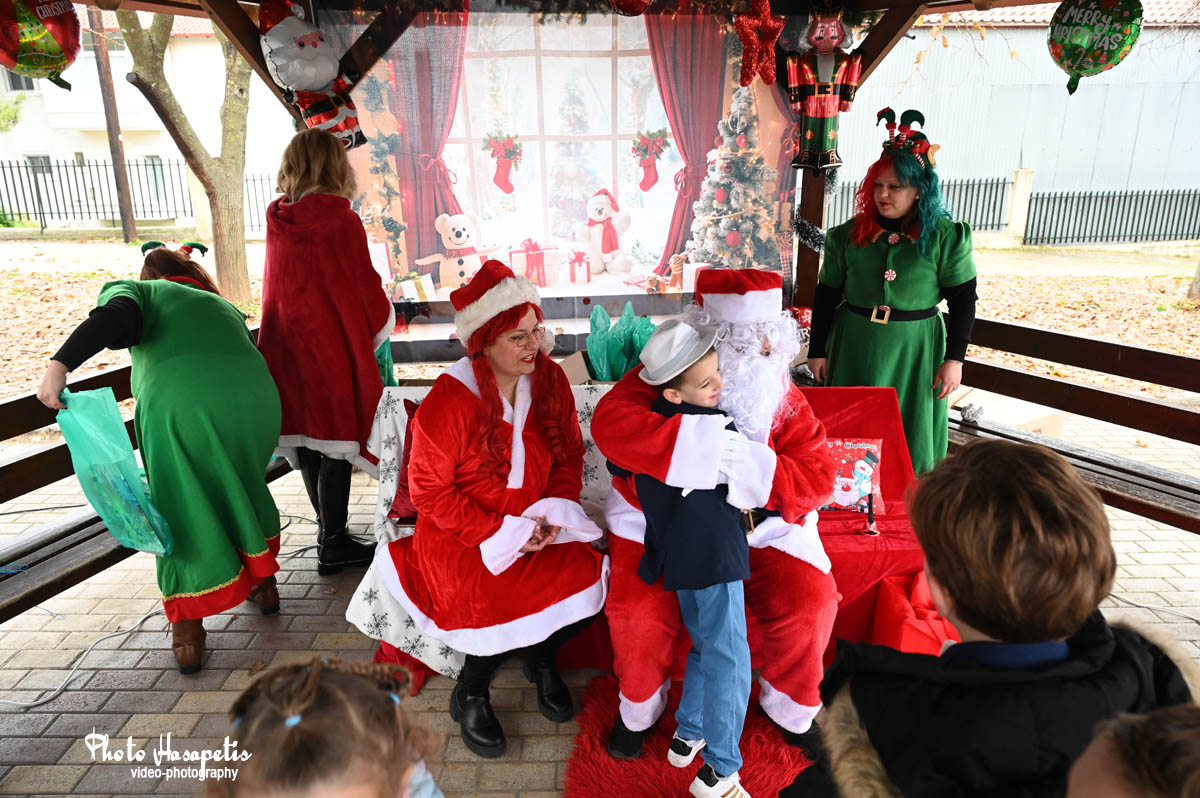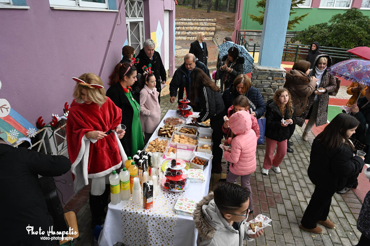 Στη συνέχεια, στην αυλή του σχολείου, ο Σύλλογος Γονέων και Κηδεμόνων δημιούργησε ένα υπέροχο χριστουγεννιάτικο σκηνικό, όπου παιδιά και γονείς απόλαυσαν λιχουδιές και τα παιδιά παρέλαβαν τα δώρα τους από τον Άη Βασίλη και την παρέα του, μέσα σε κλίμα χαράς και γιορτής!