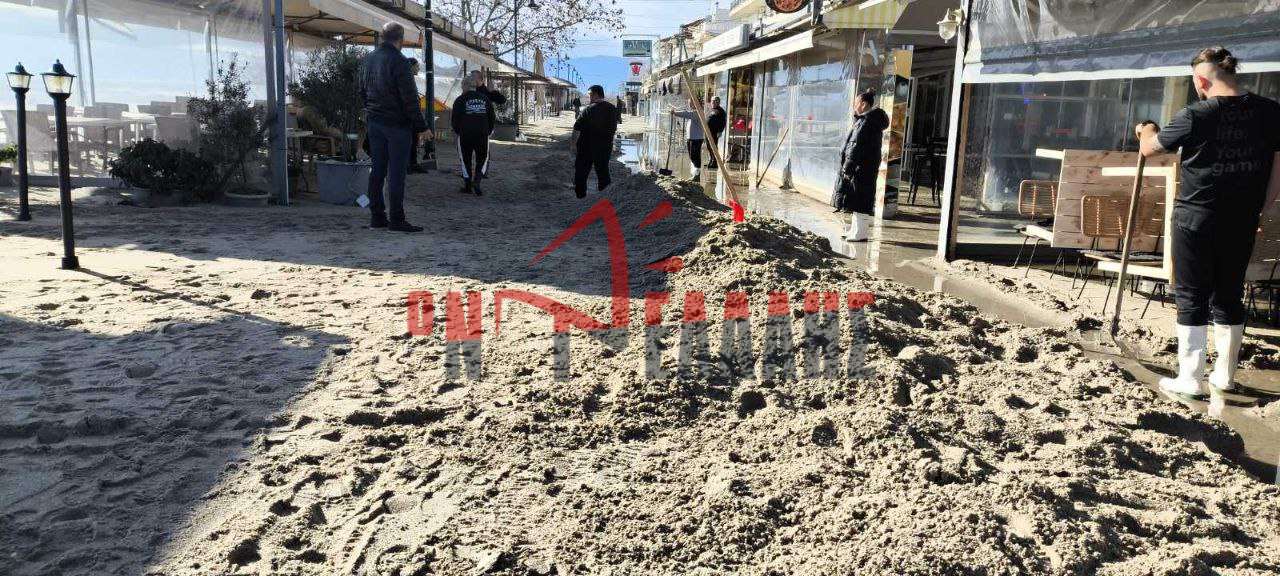 Μια πρωτόγνωρη εικόνα αντικρίζουν σήμερα κάτοικοι και επαγγελματίες στην Ολυμπιακή Ακτή, καθώς η θάλασσα υποχώρησε αφήνοντας πίσω της τεράστιους όγκους άμμου. Οι δρόμοι του οικισμού έχουν μετατραπεί σε απέραντη αμμουδιά. Η επόμενη μέρα βρίσκει την περιοχή να μετρά τις πληγές της.