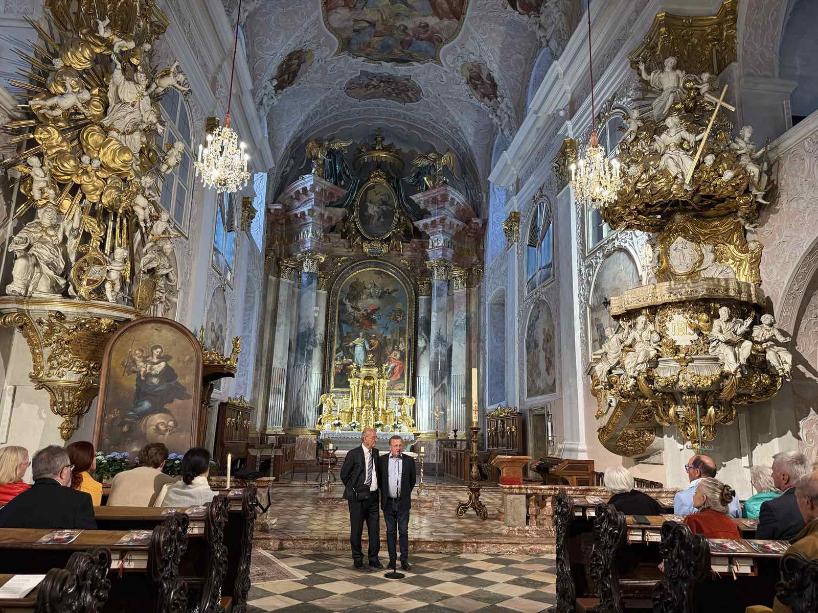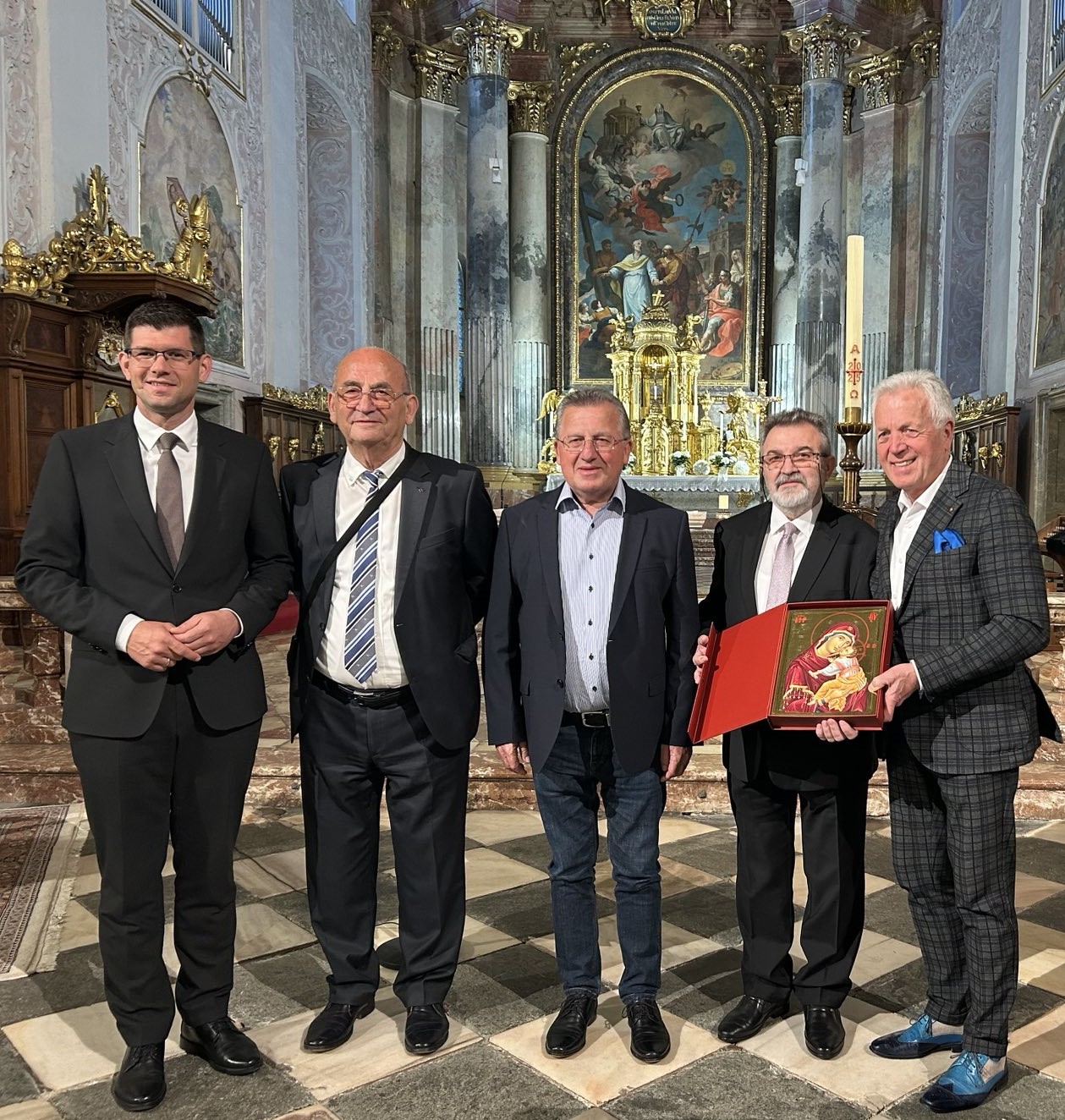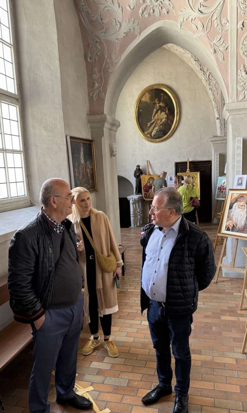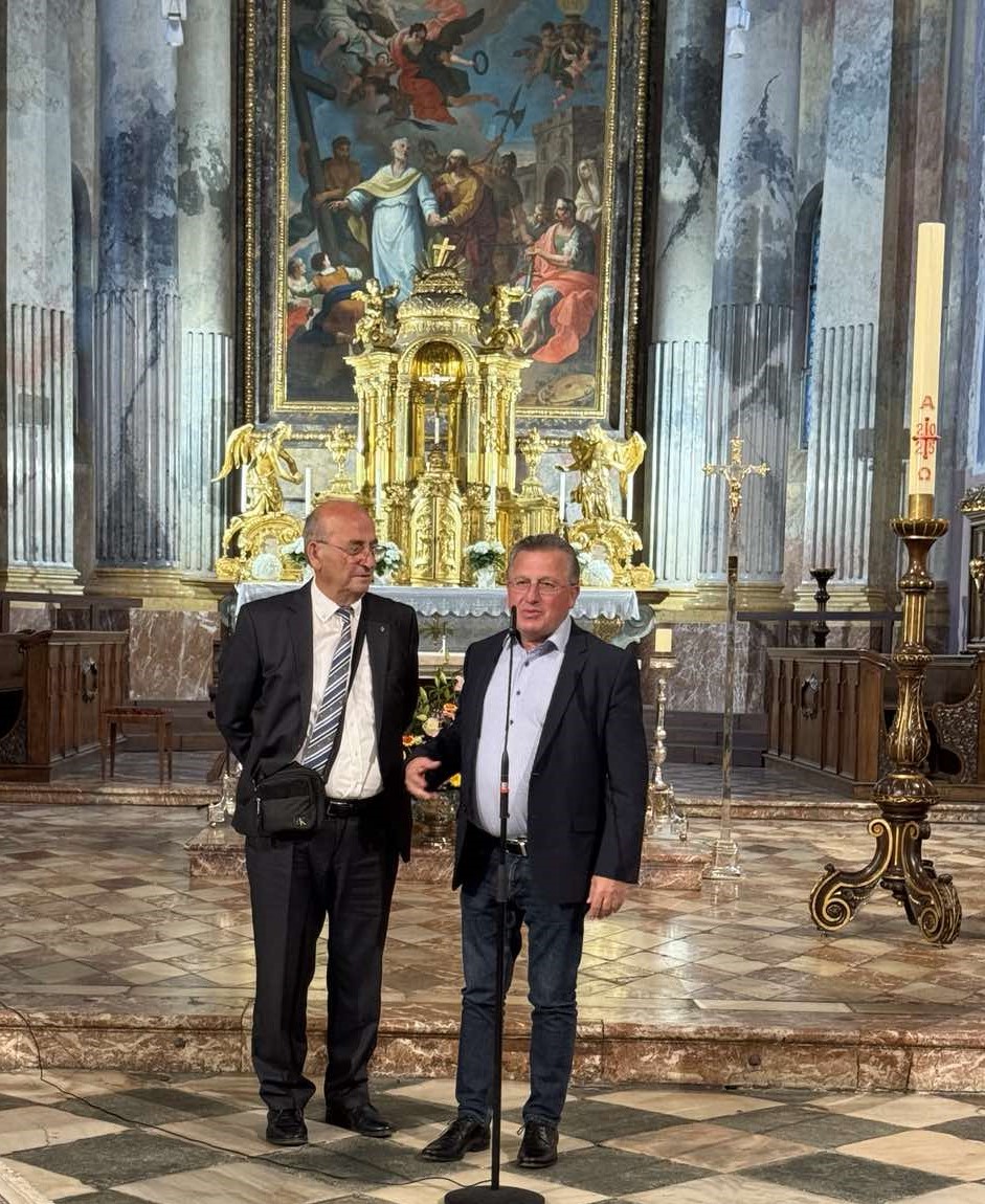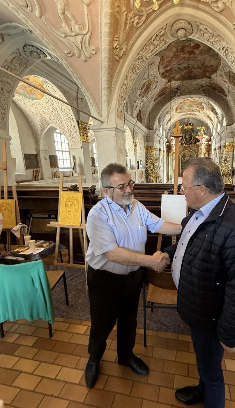 Επιπλέον, στο πλαίσιο της επίσκεψης, ο διεθνώς αναγνωρισμένος Κατερινιώτης δημιουργός – αγιογράφος, Κων/νος Ξενόπουλος, παρουσιάζει την έκθεση «Ζωή & Έργο στο Άγιον Όρος» στον επιβλητικό Καθεδρικό Ναό του Κλάγκενφουρτ. Η έκθεση, που εγκαινιάστηκε με μεγάλη ανταπόκριση και συμμετοχή, προσφέρει μια μοναδική ευκαιρία γνωριμίας με την πνευματική και καλλιτεχνική παράδοση του Αγίου Όρους. Παράλληλα, ο κ. Ξενόπουλος πραγματοποιεί σεμινάριο αγιογραφίας, παρέχοντας στους συμμετέχοντες μια βιωματική προσέγγιση της βυζαντινής τέχνης.