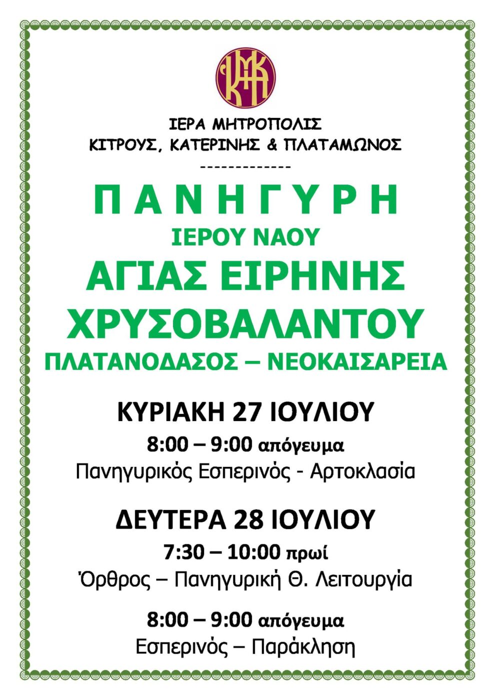 Tags #Αγία Ειρήνη Χρυσοβαλάντου #Ιερά Πανήγυρις #Πλατανόδασος Νεοκαισάρειας