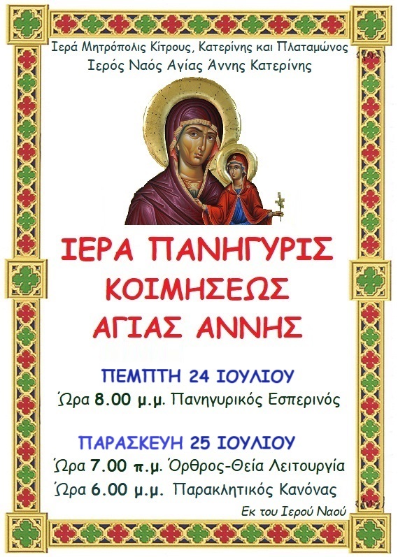 Ιερά Πανήγυρις Κοιμήσεως Αγίας Άννης