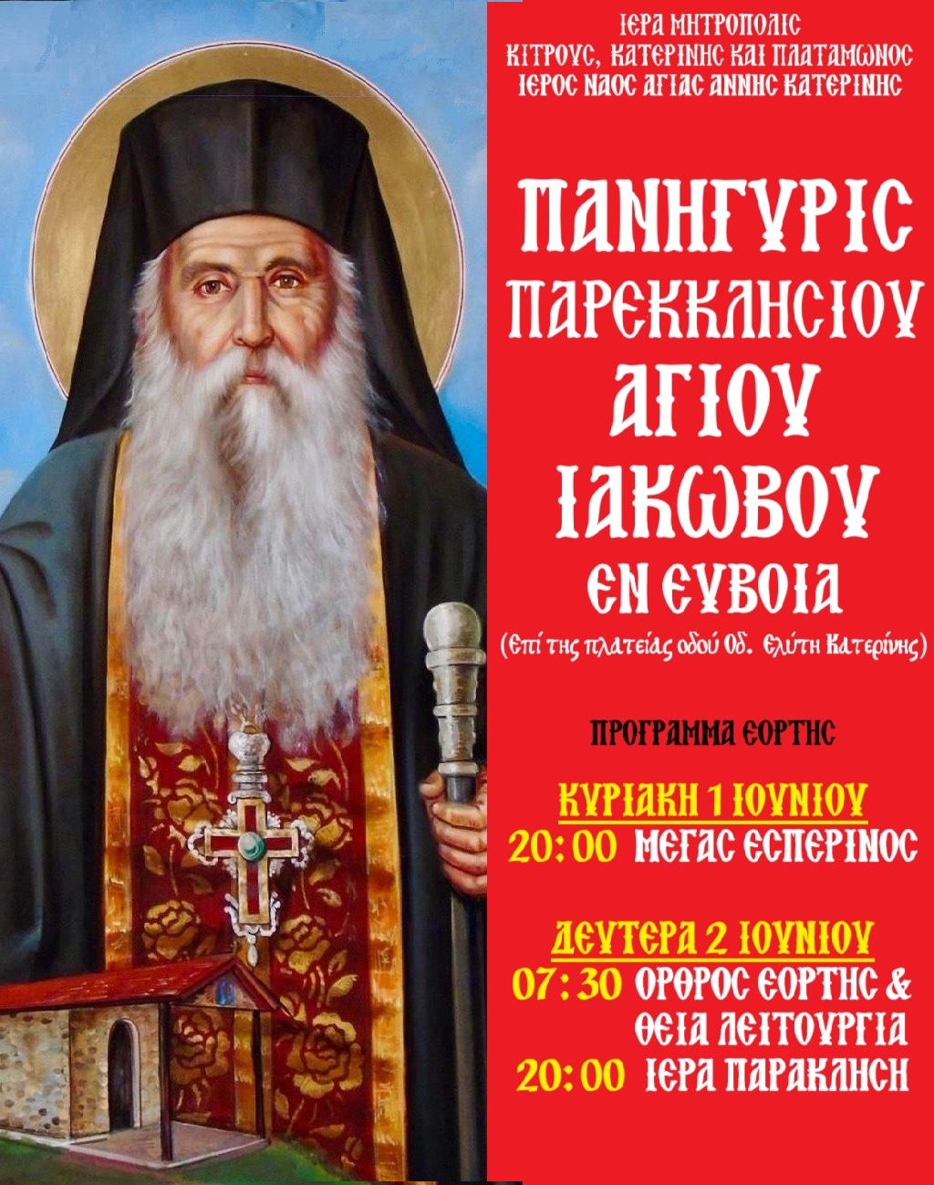 Ιερά Πανήγυρις Παρεκκλησίου Αγίου Ιακώβου εν Ευβοία Κατερίνης