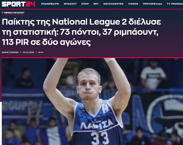 Ολόκληρη η μπασκετική National League 2 (και όχι μόνο) στρέφει το βλέμμα της στην Κατερίνη και τον Κώστα Τσιρογιάννη. Ο άσος των Πανθήρων Κατερίνης κέντρισε το ενδιαφέρον κορυφαίου αθλητικού ιστότοπου Sport24, με τους δημοσιογράφους να κάνουν λόγο για «τρελά νούμερα» που σπάνε κάθε κοντέρ στη National League 2.