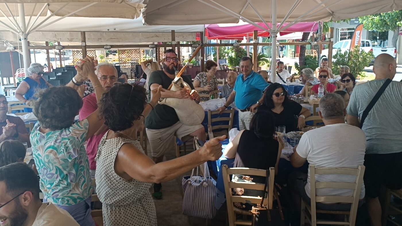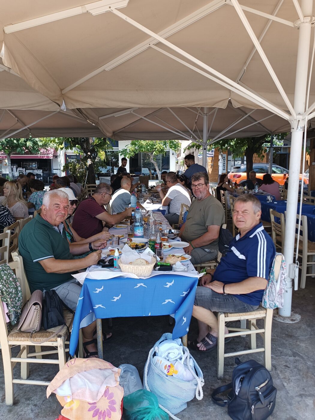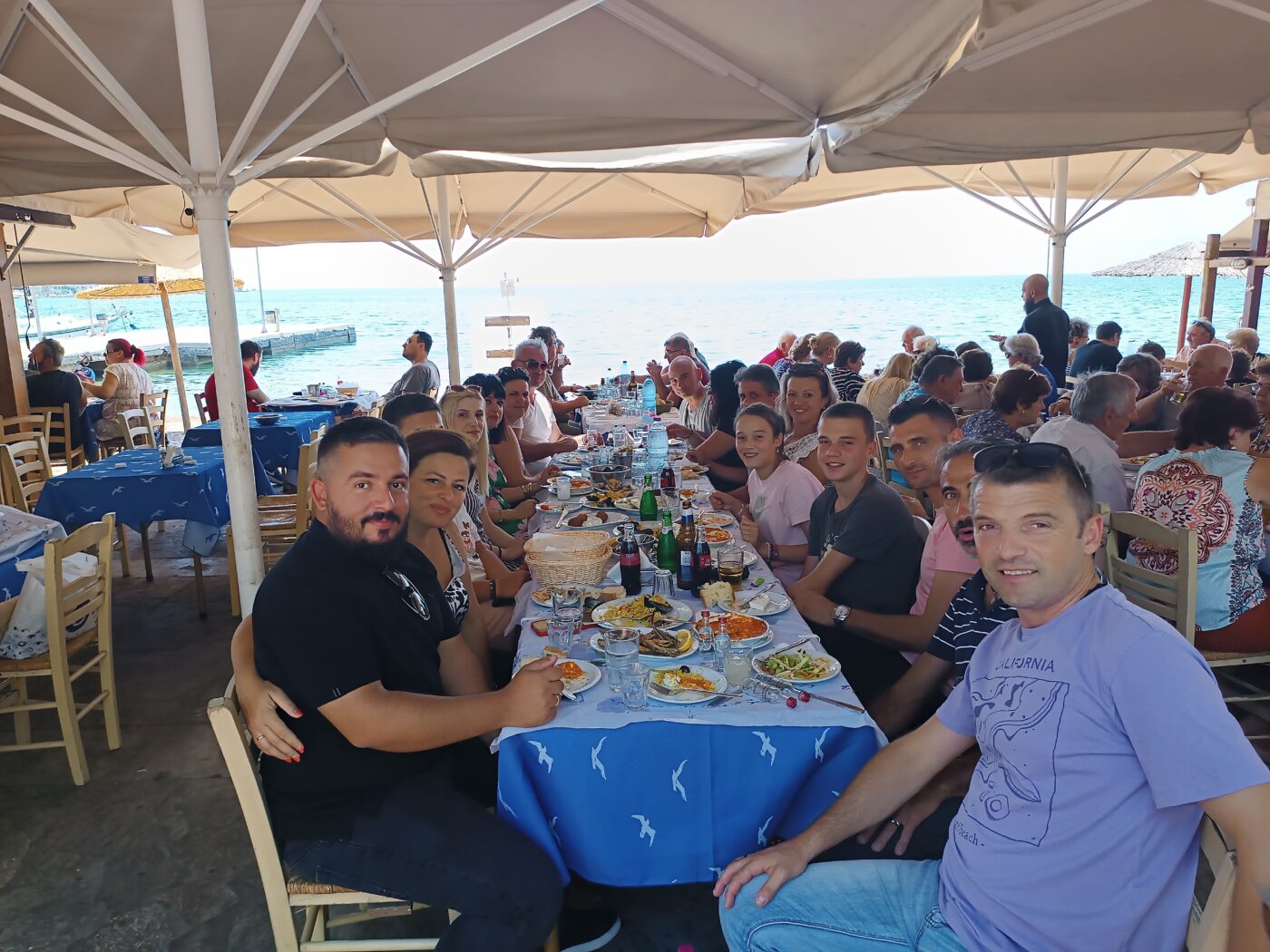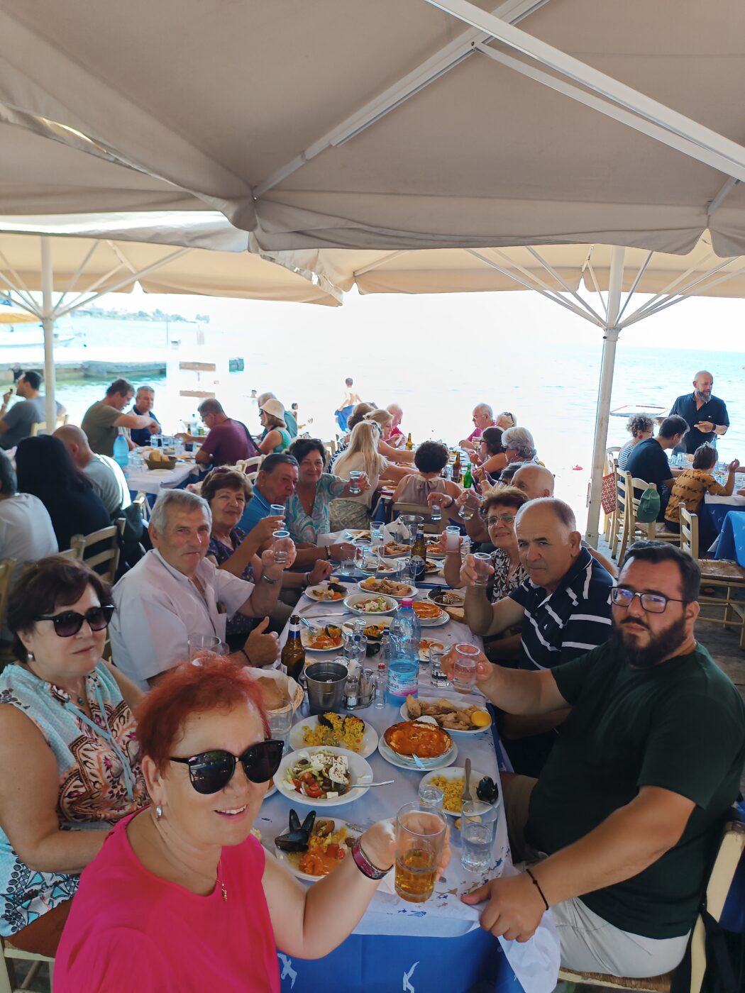 Το μεσημεριανό γεύμα και το μπάνιο μας ήταν στις πανέμορφες παραλίες της Αγριάς μπροστά στο κύμα σε μια μοναδική ψαροταβέρνα όπου μετά το μπάνιο μας, το τσίπουρο, τα εδέσματα, η φιλοξενία και η οργάνωση ,σε συνοδεία με την Γκάιντα δημιούργησαν ένα ανεπανάληπτο ΔΡΥΑΝΙΣΤΙΝΟ γλέντι με τραγούδι και χορό ξεσηκώνοντας όλη την παραλία σε χορούς!!!