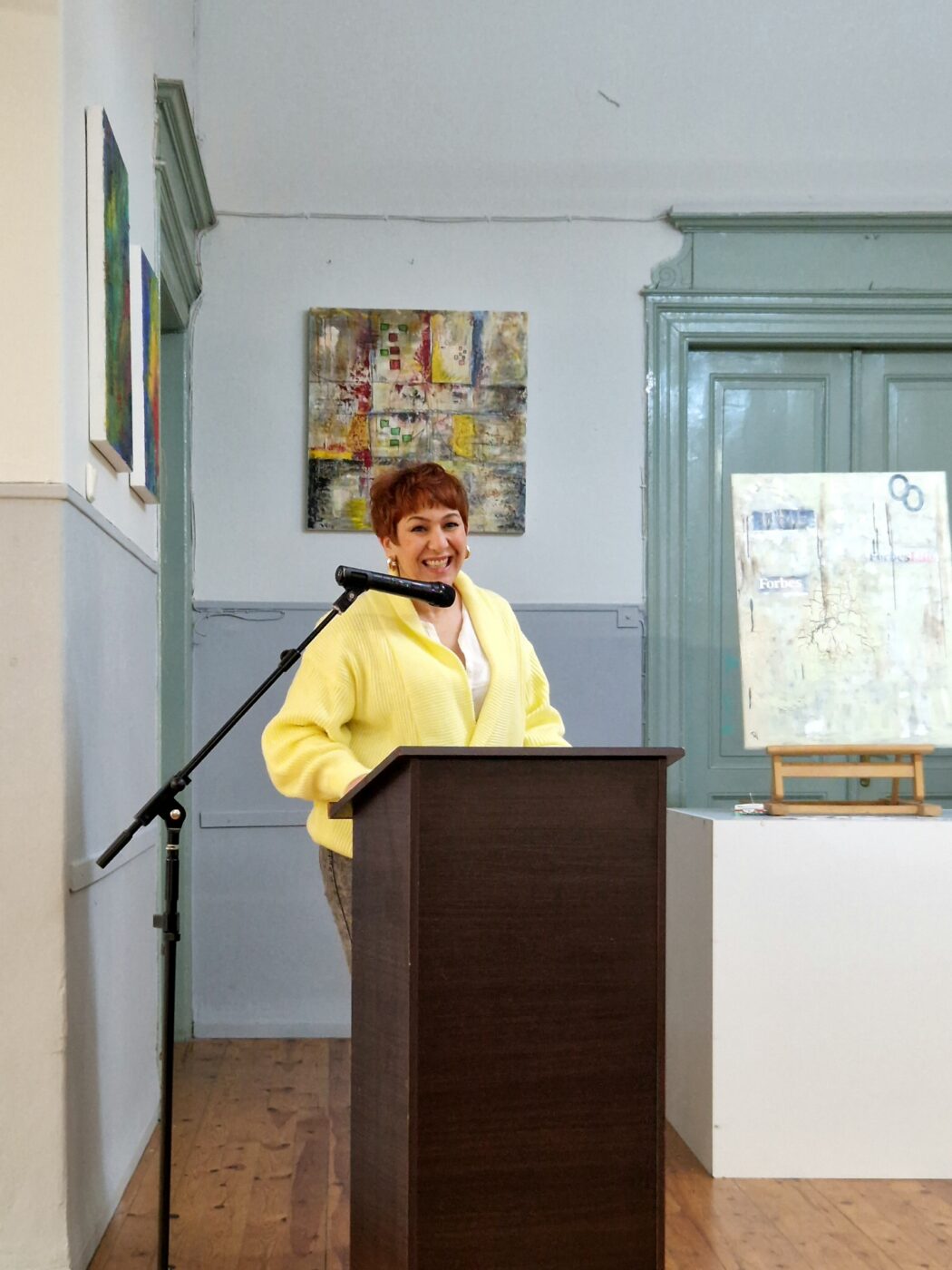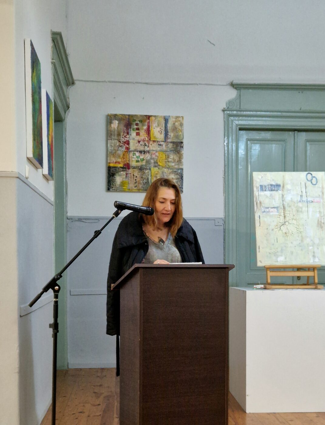 Τέλος στο βήμα ανέβηκε η Γραμματέας του ΣΕΚΠ Κωνσταντία Καρλέτσα, η οποία επανέλαβε την ομιλία του κ. Vorkoetter στα ελληνικά, καθώς ο καλλιτέχνης μη γνωρίζοντας αρκετά καλά τη γλώσσα μας προτίμησε να την κάνει στα αγγλικά. Τελειώνοντας η κ. Καρλέτσα παρότρυνε τον κόσμο να περιηγηθεί της αίθουσας για να απολαύσει τα έργα του ζωγράφου.