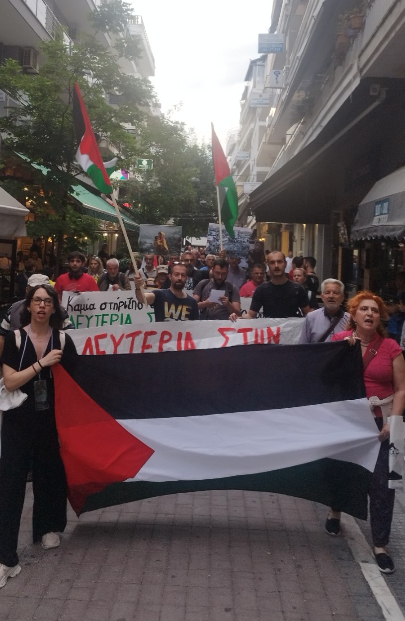 Έγινε η εκδήλωση συμπαράστασης στον Παλαιστινιακό λαό την Πέμπτη 29 Μαΐου 2025 στις 7 το απόγευμα, στην κεντρική πλατεία της Κατερίνης. Ακολούθησε πορεία στους δρόμους της πόλης.